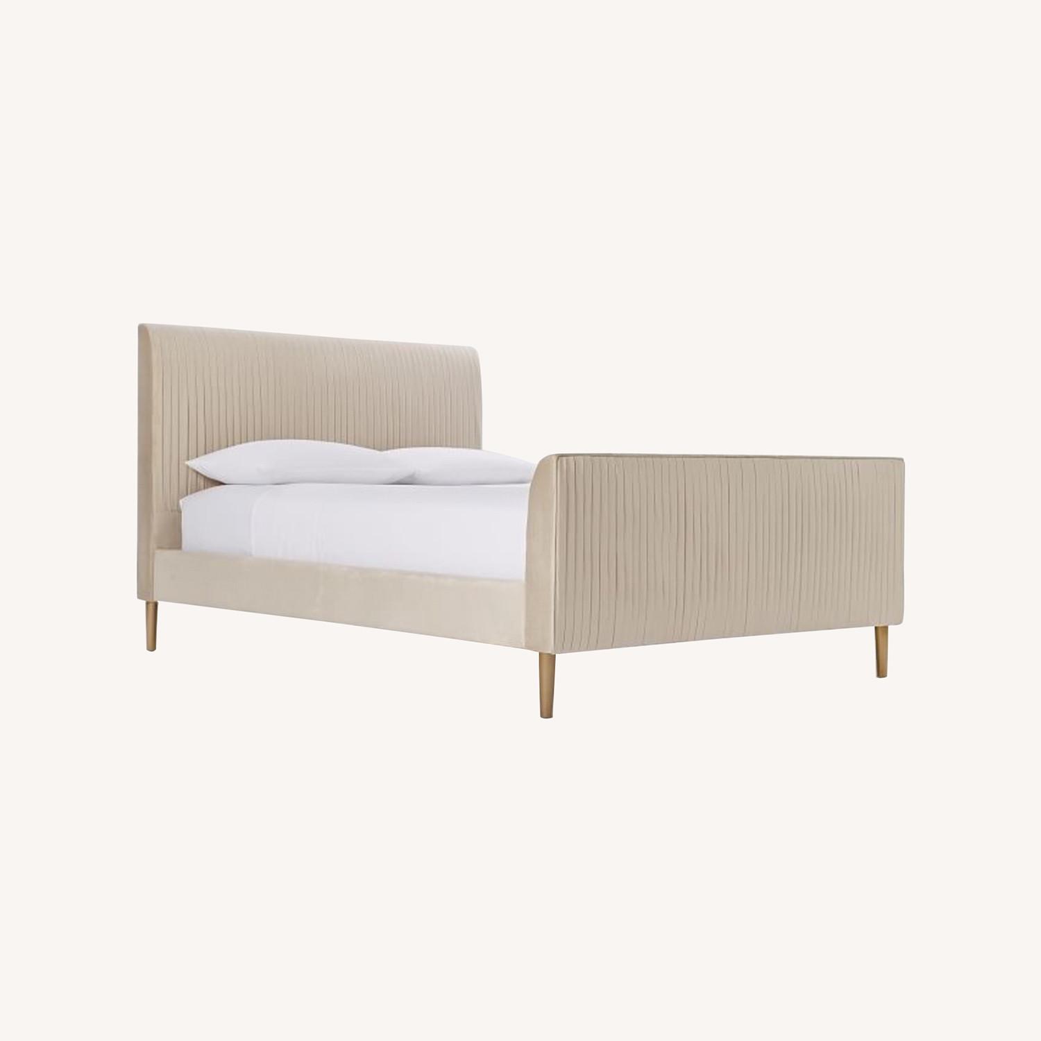 West Elm King Size Bed in Luster Velvet, Stone