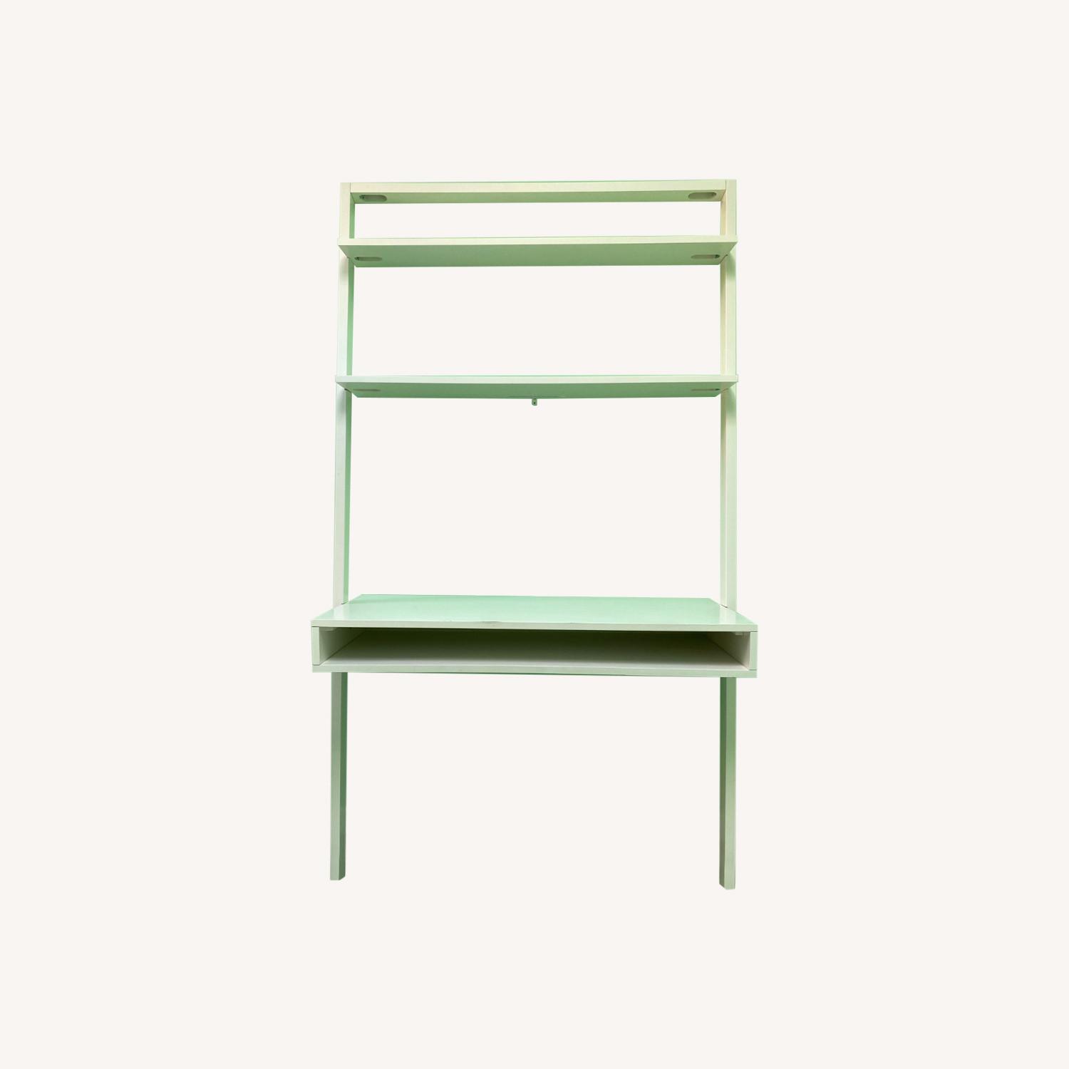 Seller's Notes:White ladder desk from West Elm in solid wood with white lacquer finish, now sold out. In great condition, some minor scuffs and scratches on the main desk shelf, otherwise pristine. Paid almost $600 for this just over a year ago. MEASUREMENTS: Overall: 44"w x 19"d x 77.5"h Top shelf: 42.7"w x 7"d 2nd shelf: 42.7"w x 9"d Top shelf to 2nd shelf: 14". Desktop: 43.75"w x 19"d. Shelf to desktop: 25" Clearance under desk: 24"