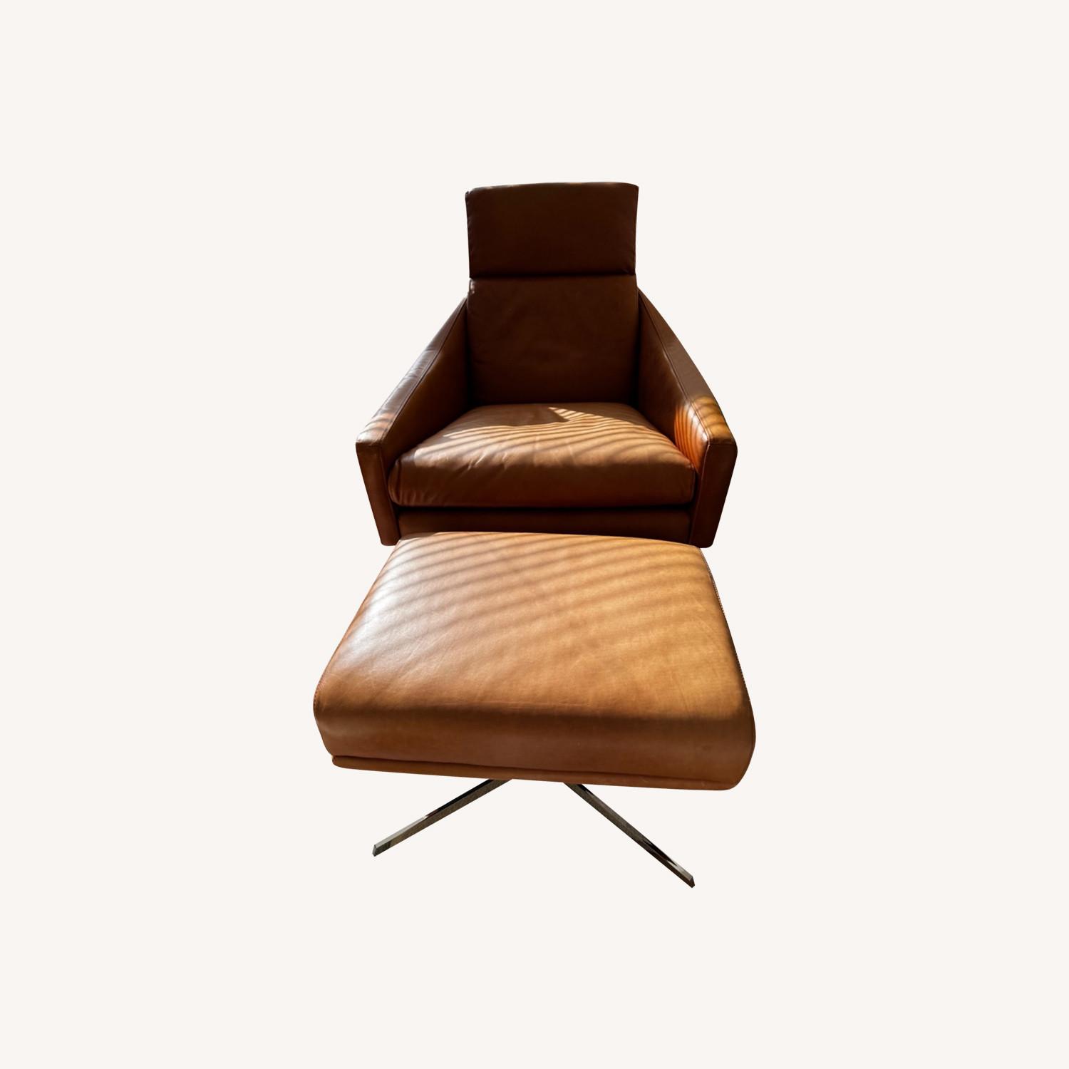 West Elm Leather Swivel Chair & Ottoman