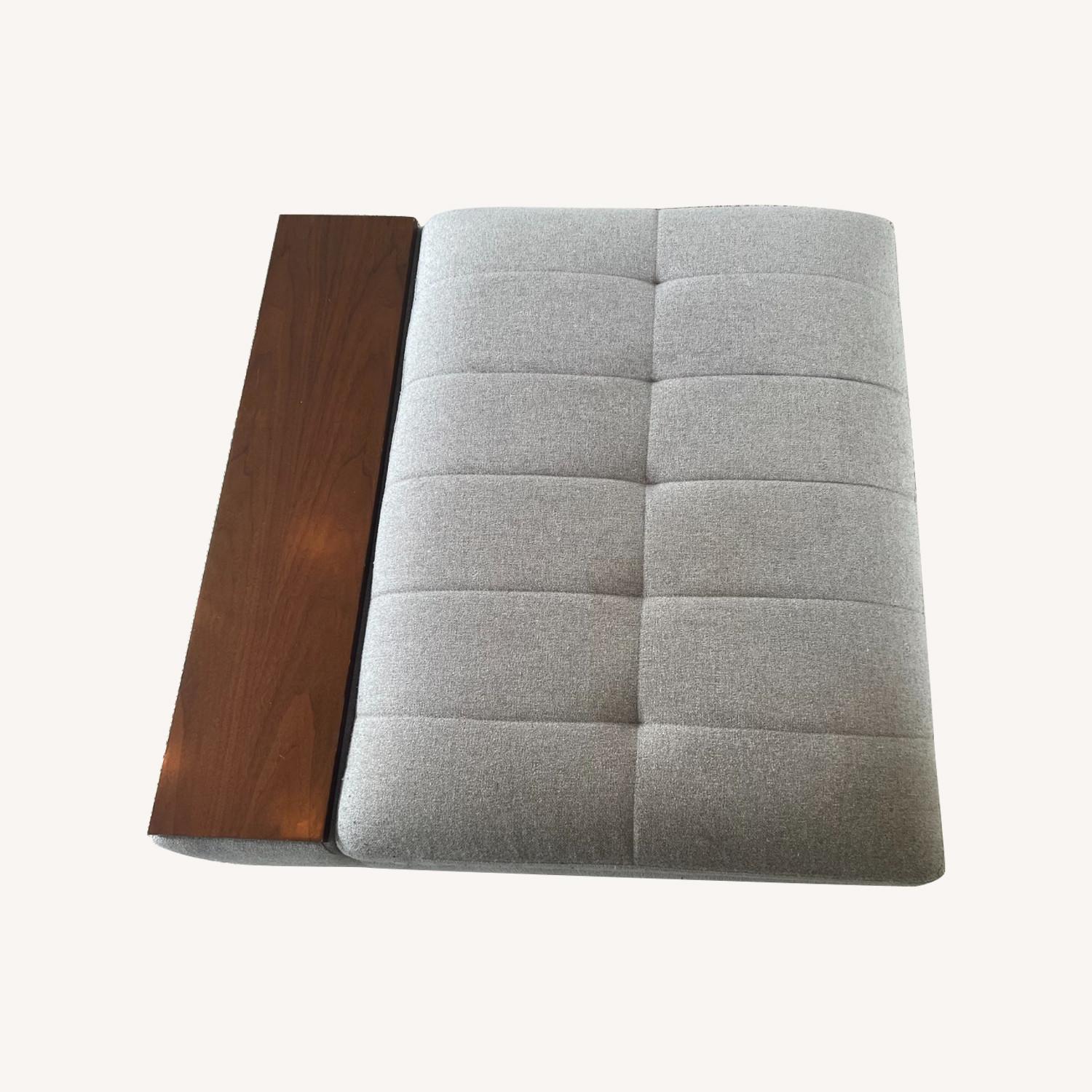 West Elm Light Grey Storage Ottoman w Wood Panel