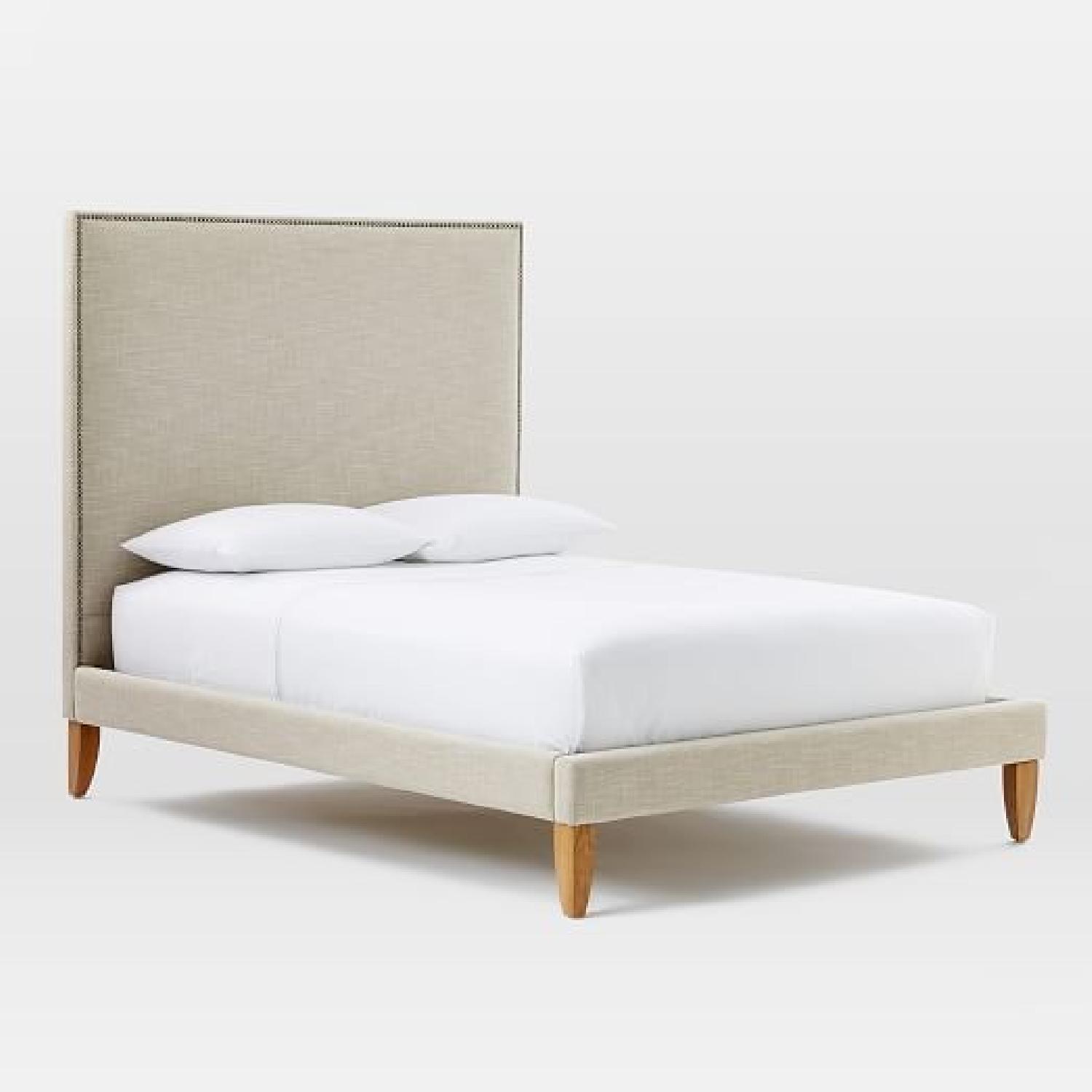 West Elm Linen Weave Tall Nailhead Tapered Leg Bed