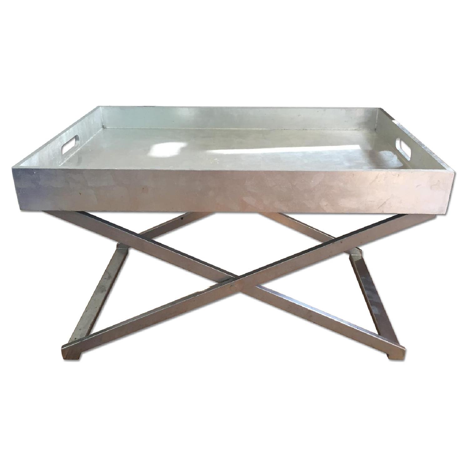 Seller's Notes:West Elm Butler coffee table in great condition. There are a couple of scratches and minor discoloration on the tray. The stand is in near perfect condition. The dimensions are: 17"H by 28 L x 18 w