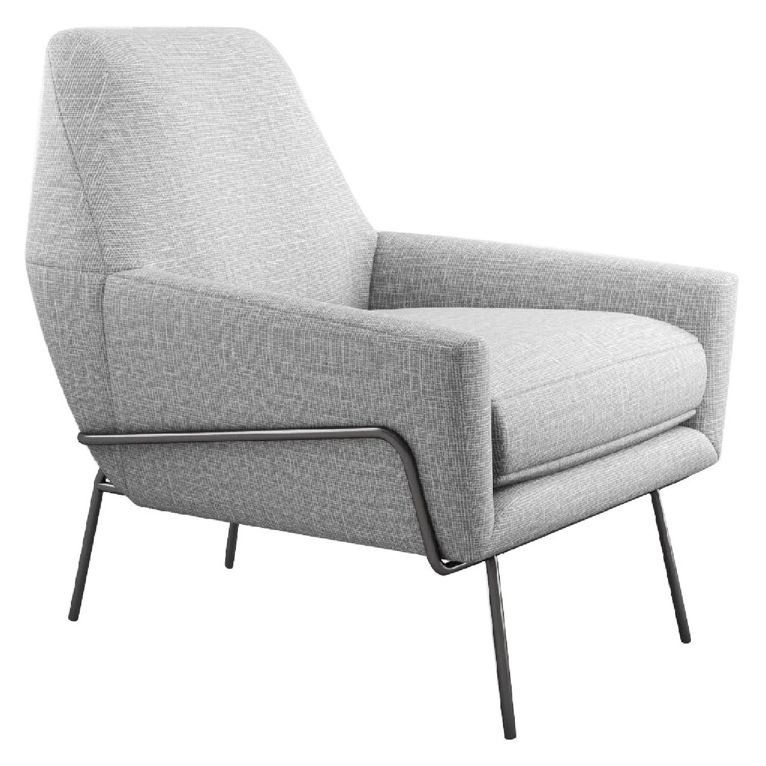 Seller's Notes:Sit and stay a while. The wire base and modern lines on the Lucas give it an urban and industrially-cool look, with a reclined pitch that’s a warm welcome. This chair is only one year old and has barely been used - it was stored on the side of our living room due to lack of space, so barely anyone has even had the chance to sit in it! It has the following features: Metal frame in Burnished Bronze finish. Linen Weave. Upholstered. Imported.
