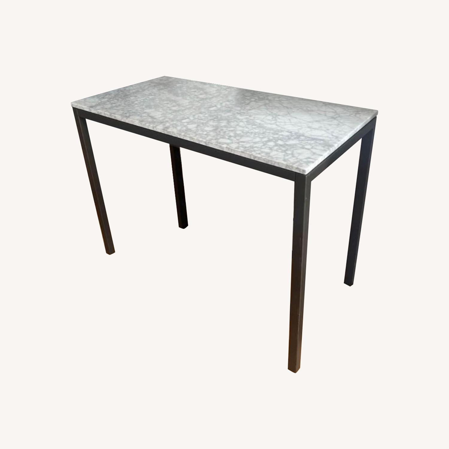 Seller's Notes:West Elm counter height marble bar table with matte black metal legs. Great condition, the front leg has some light scratches and top has some water marks but only visible under direct light. Originally bought for $900.