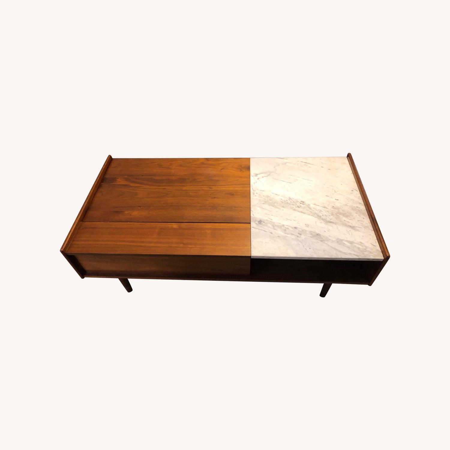 West Elm Marble/Walnut Coffee Table with Pop Up