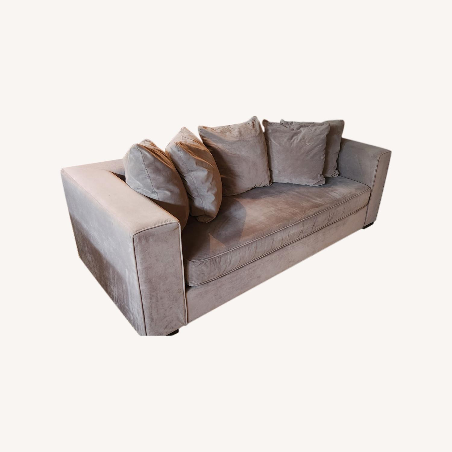 Seller's Notes:Excellent condition, beautiful, clean and carefully maintained with no blemishes on the suede. Walton West Elm Sofa. Comfortable, elegant and luxurious looking. Stored on ground-level no stairs in a country estate.