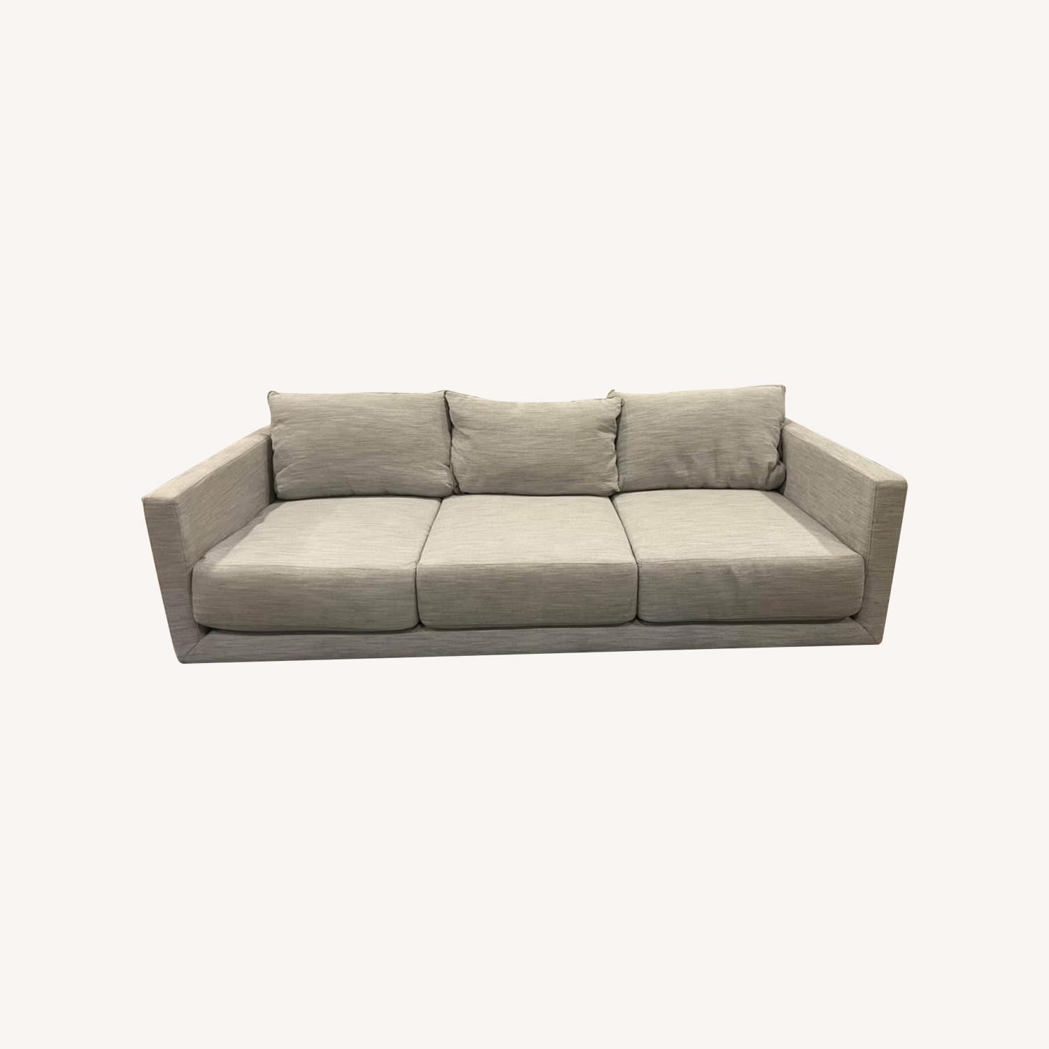 Seller's Notes:We’ve had this West Elm sofa for a year and a half so it’s in good condition. Slim base stylishly frames thick, sink-right-in cushions. Full dimensions in the photos but it’s Melbourne 96" Sofa, Poly, Basket Slub, Frost Gray. Minor piling on underside of seat cushion but cannot be seen as they are on the side that isn’t visible/ touching the underside of the sofa. All cushion covers come off and can be cleaned. Pet home but only to a non-shedding dog.