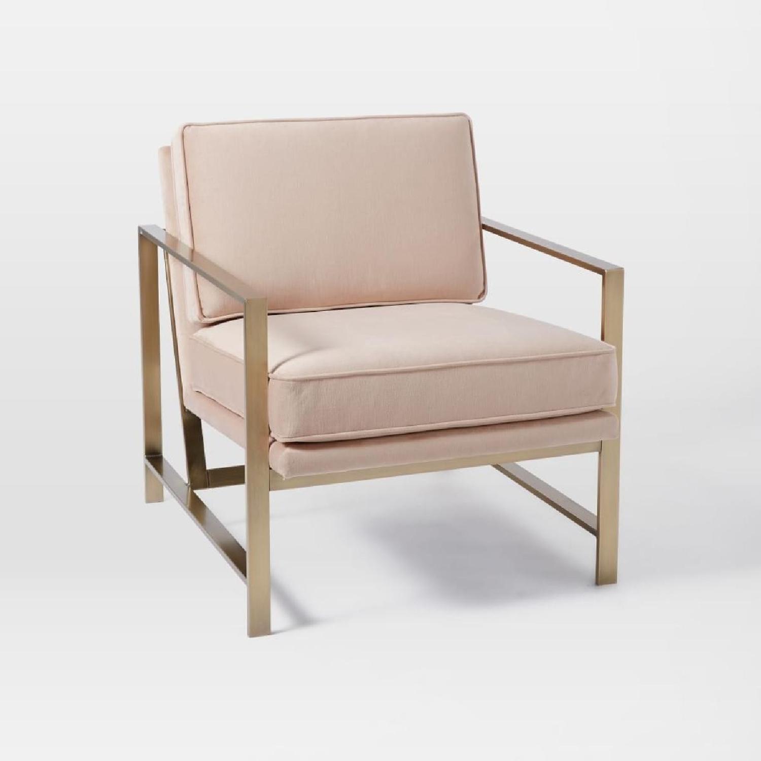 Seller's Notes:Im redecorating my living room so thats why Im selling this arm chair (metal antic gold brass frame and pink blush velvet suede) which I bought it 8 months ago. Its in excellent conditions, looks like a brand new chair.