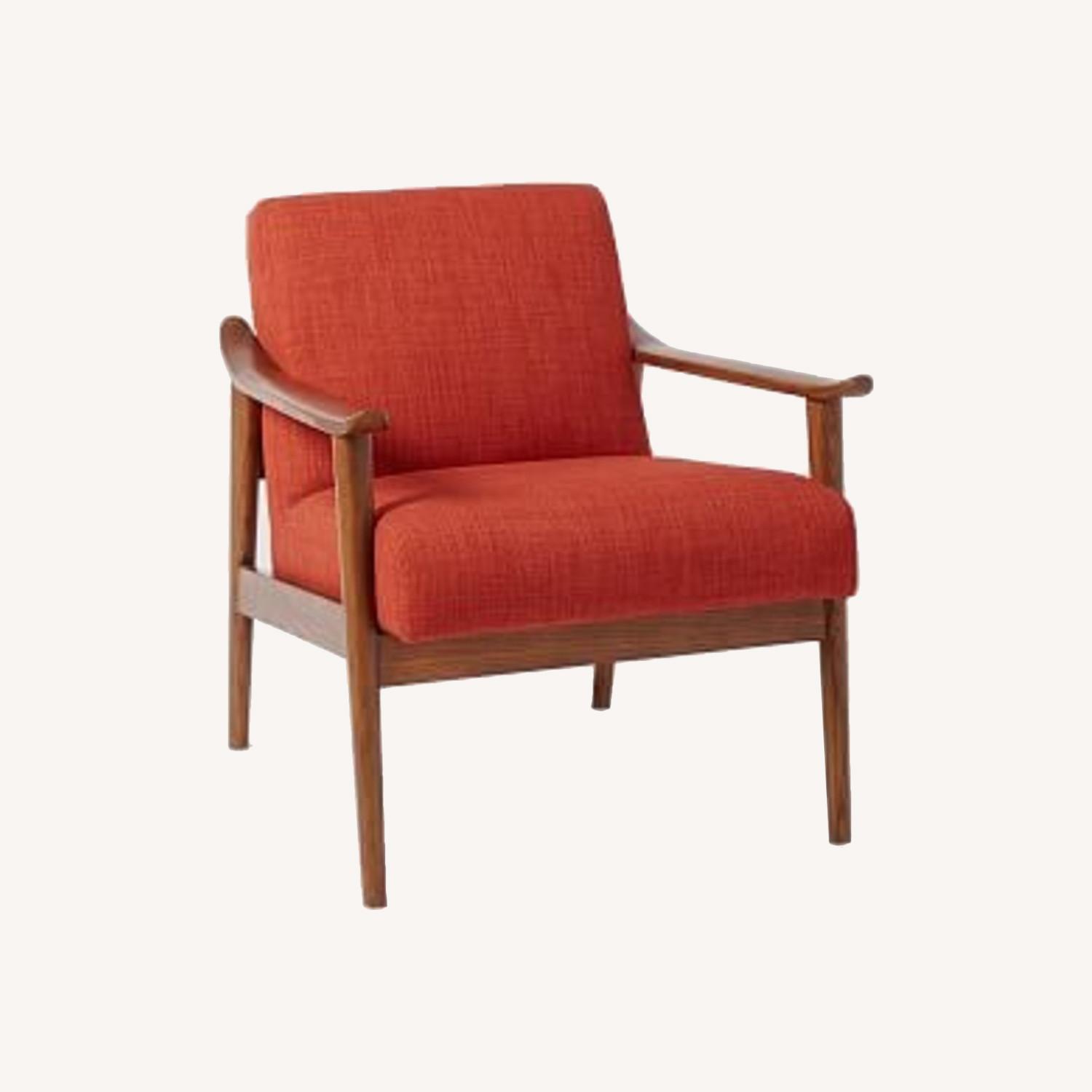 Seller's Notes:This is a gorgeous chair in nearly perfect condition from West Elm. Great for reading. I am only selling it because I no longer have room for it. The orange foot stool is from another company, but works well with the chair. There is very minor scuffing on the bottom of two legs, which nobody will notice.