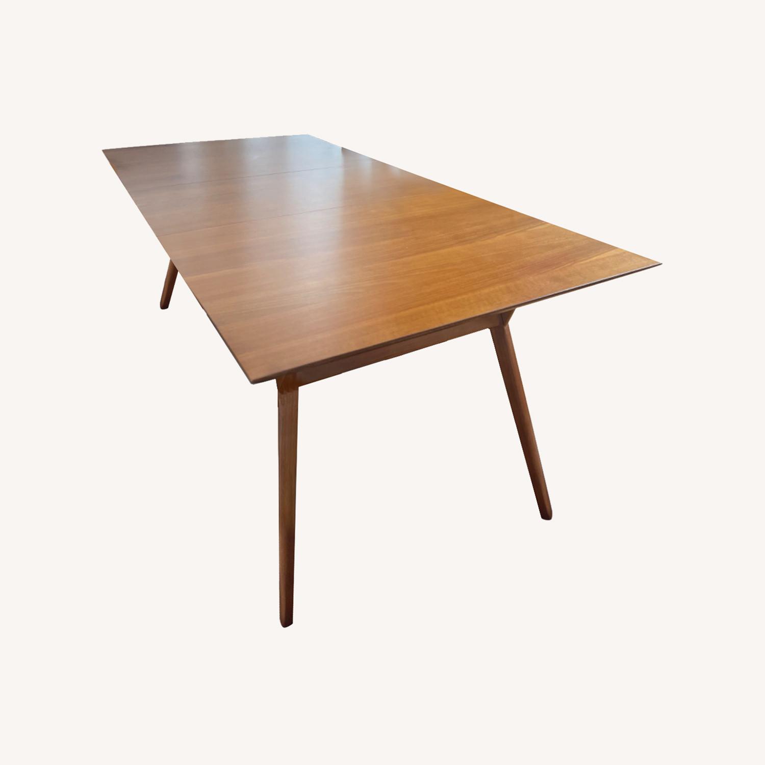 Seller's Notes:Beautiful dining room table with a leaf, making it the perfect place to entertain. Table only one year old with minimum use. Leaf can be removed for smaller size (Overall (no leaf): 60"w x 38"d x 30"h)