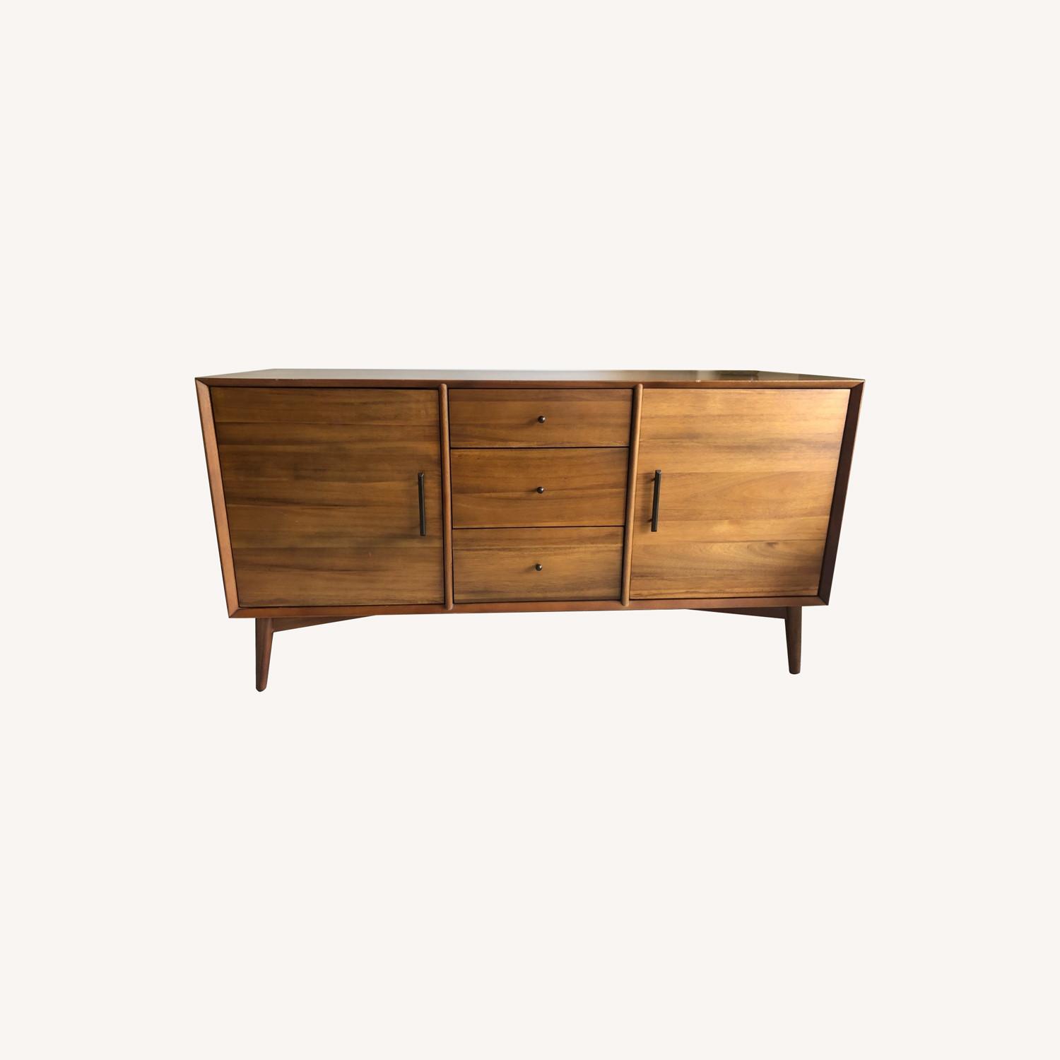 Seller's Notes:We are selling a beautiful West Elm Mid-Century Modern Buffet. It was most recently used for media storage and as a television stand, but has the potential for many other uses. Signs of wear include some superficial scratches and blemishes (see photos). There are two large cupboards and drawers for storage. This is an extremely solid and well made piece.