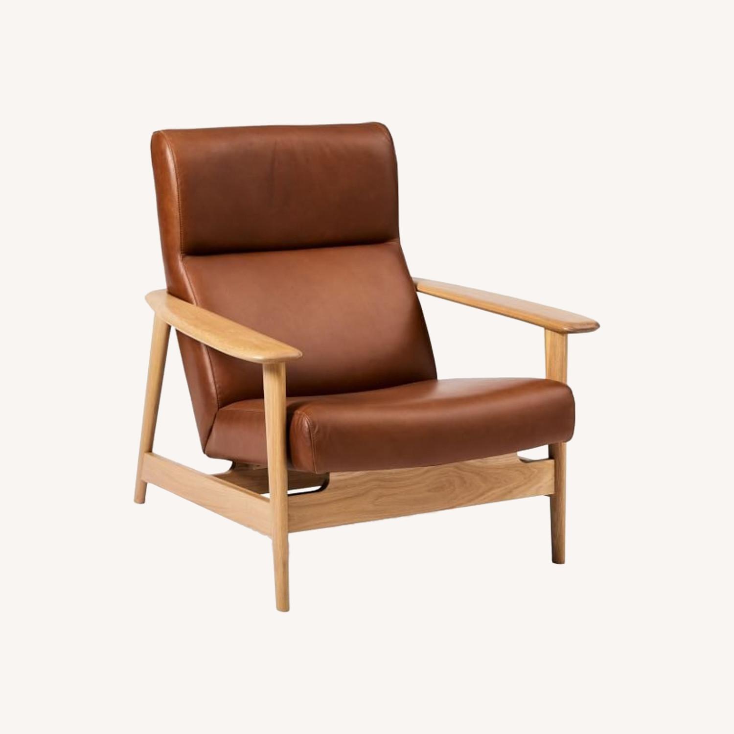 Seller's Notes:Top-grain aniline leather upholstery. Aniline leather has a natural look and soft, waxy finish that will scuff over time and develop a beautiful vintage patina with age and use. Saddle Leather: Solid oak wood arms and legs in a Natural Oak finish. Sierra Leather: Solid ash wood arms and legs in a Pecan finish. Engineered wood seat and back. All wood is kiln dried for added durability. Webbed cushion support with foam filling. Coordinates with the Mid-Century Show Wood High-Back Ottoman (sold separately). Made in China.