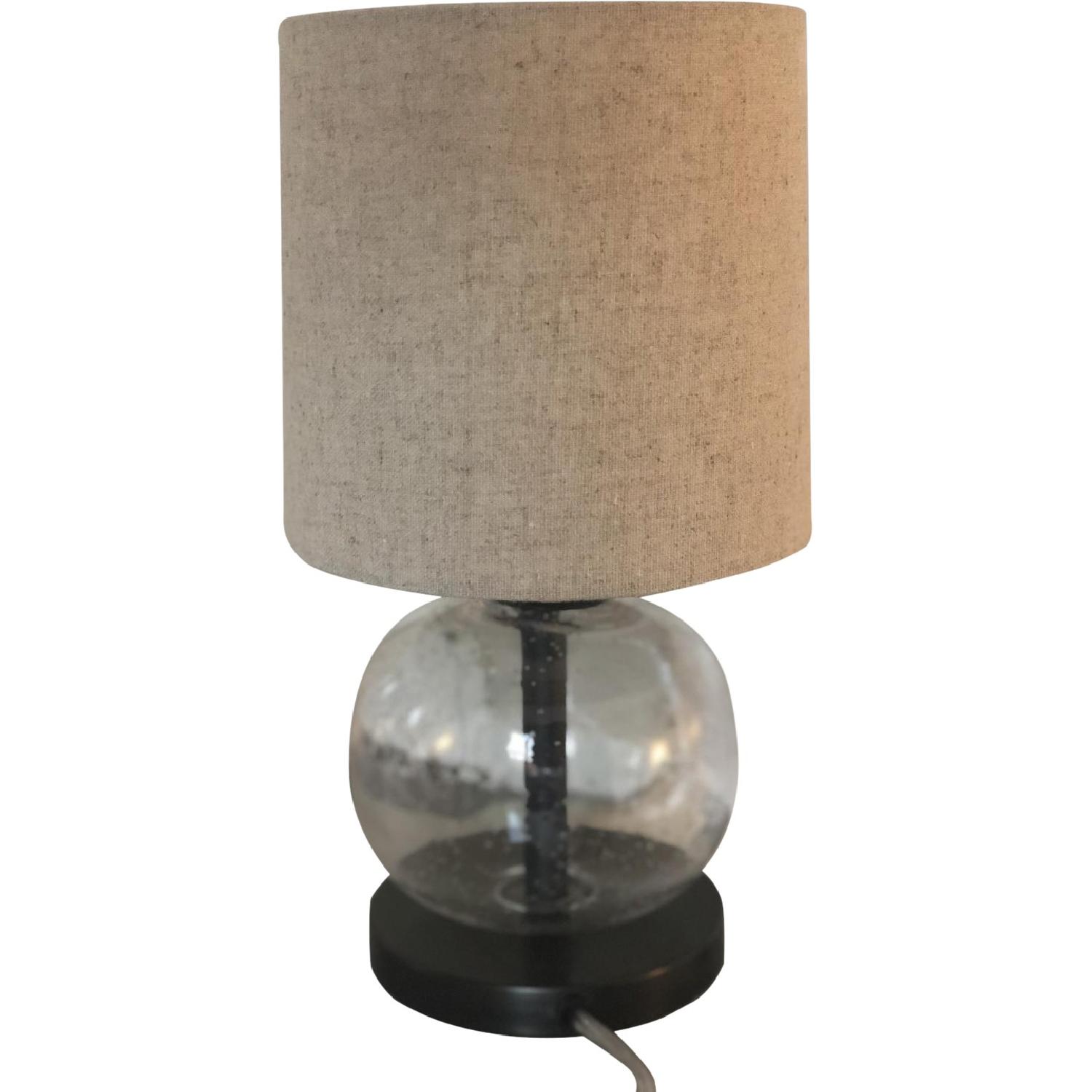 Seller's Notes:This lamp is just like new . Although there is a dog in my home he is a poodle therefor hypoallergenic and doesn’t shed hair. I am selling in a different listing the bigger version of this lamp as well. DETAILED SPECIFICATIONS Overall product dimensions: 6.5"diam. x 14.9"h. Base: 5.5"diam. x 8.4"h. Shade: 6.5"diam. x 6.5"h. Cord length: 108". Accommodates a 13W CFL bulb (included) or 60W incandescent bulb (not included). In-line on/off switch. UL listed.