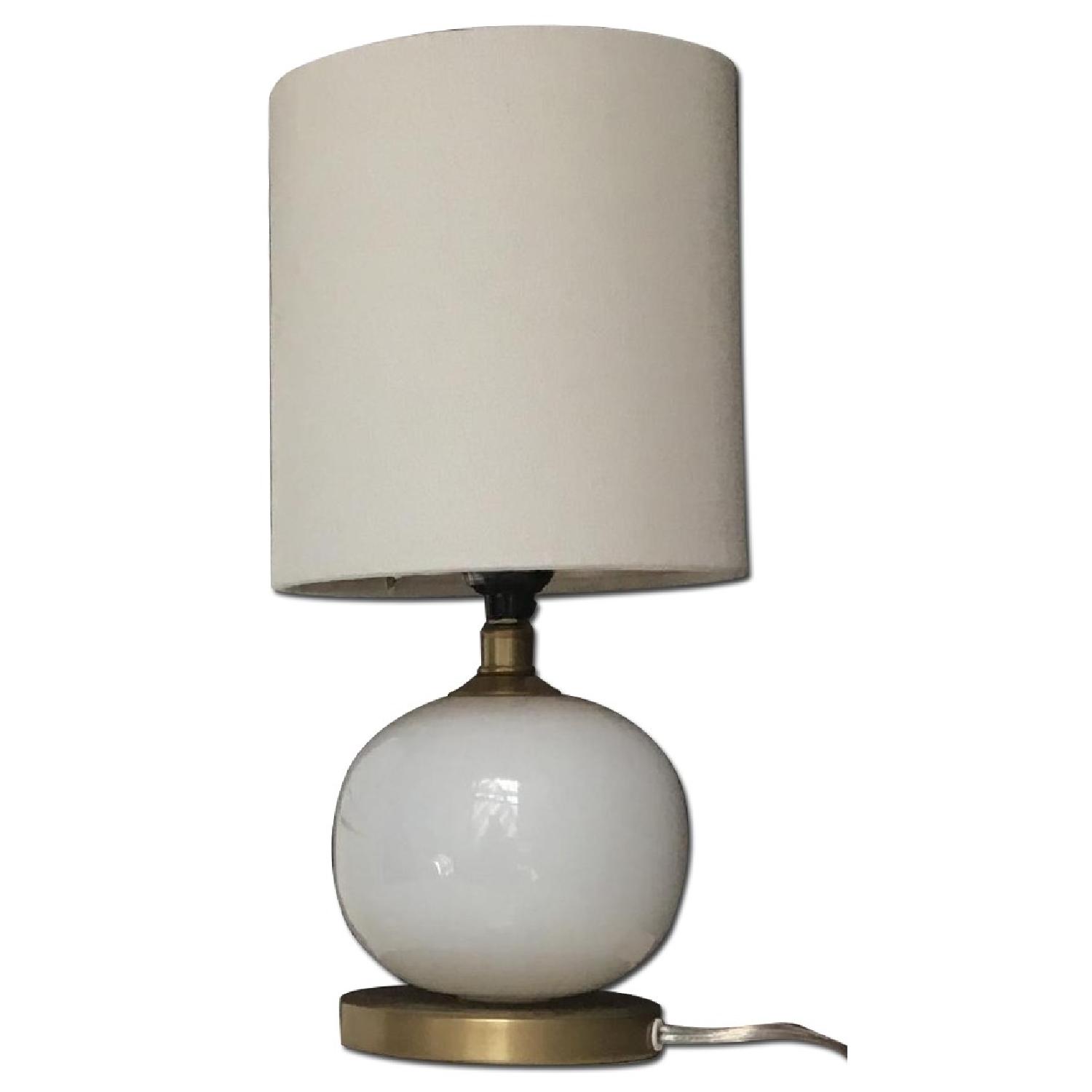 Seller's Notes:I'm moving and selling this West Elm Mini Abacus Table Lamp in Milk Finish. I've had it for about 4 months and it was used very infrequently, so it's in great condition. Glass act. The Mini Abacus Table Lamp's shapely glass sphere is a glamorous statement piece on desks or consoles. 6.5"diam. x 14.9"h. Glass with Milk finish; iron base with plated antique bronze finish. White linen shade. Imported.