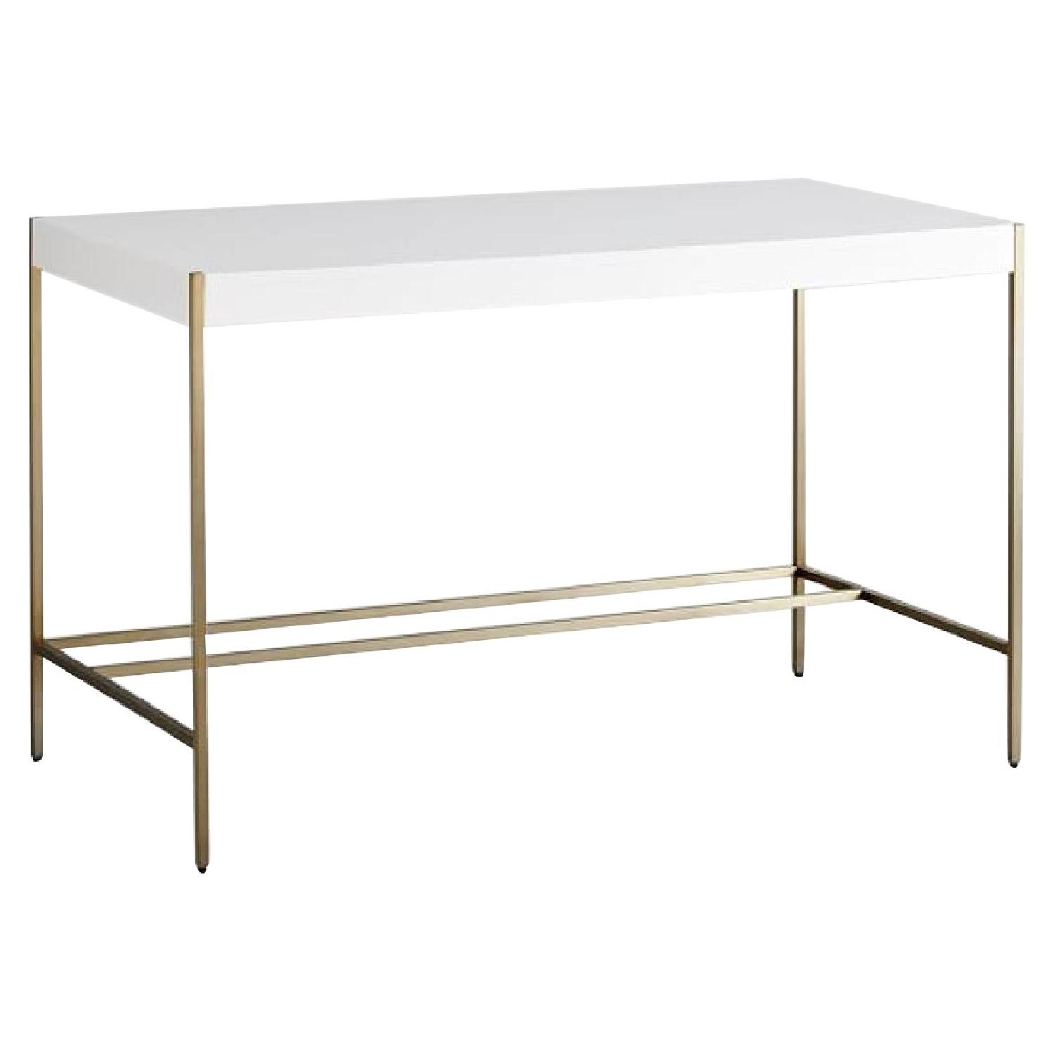 Seller's Notes:Zane Desk creates a spot for writing, reading or catching up on email anywhere with two storage drawers —it fits your bedroom, living room, kitchen—for the perfect home office or handy vanity. Sleek, easy-to-clean lacquer and antique brass details pull it all together. - Perfect condition - No scratches, NO stains, No damage, very carefully maintained - please check the matched office chair listed separately :)