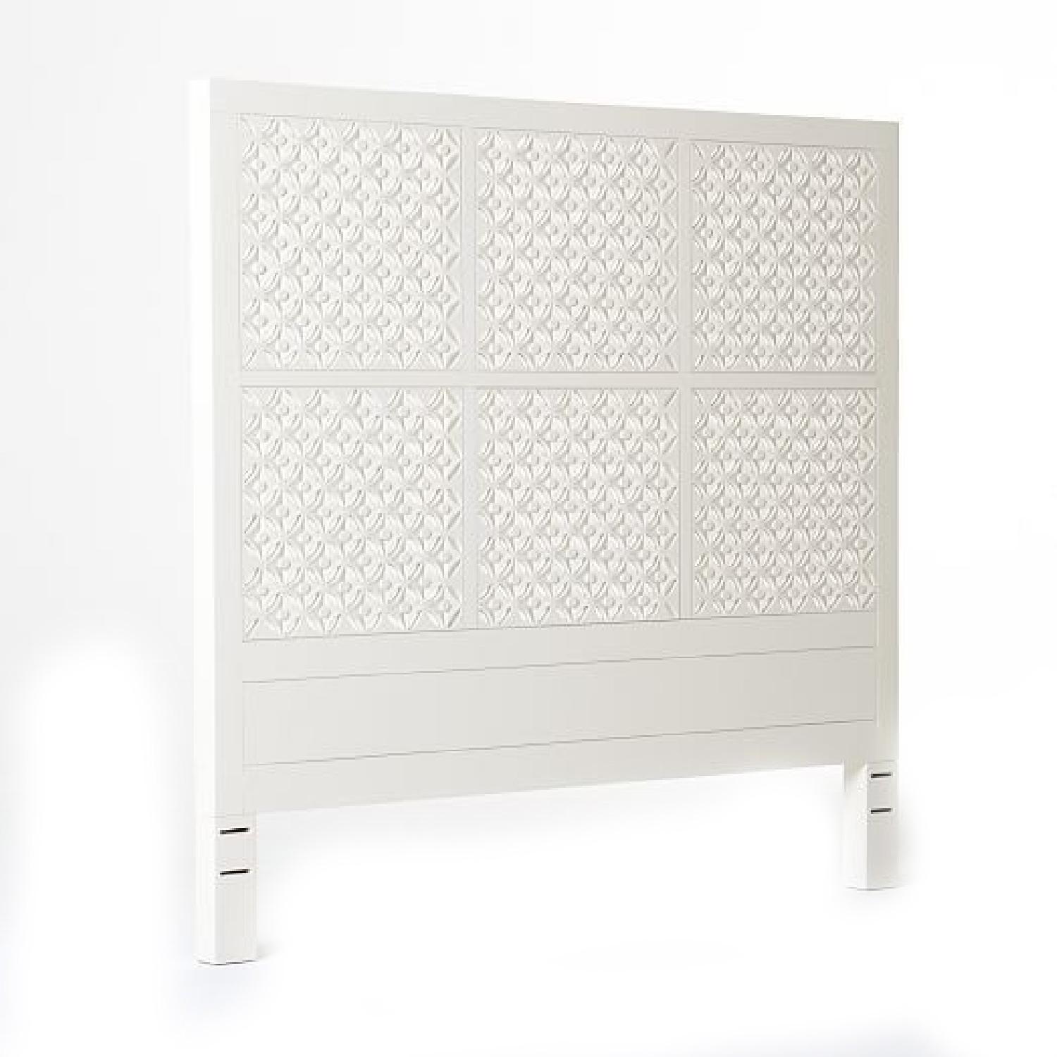 West Elm Moroccan Queen Headboard in White Carved Wood