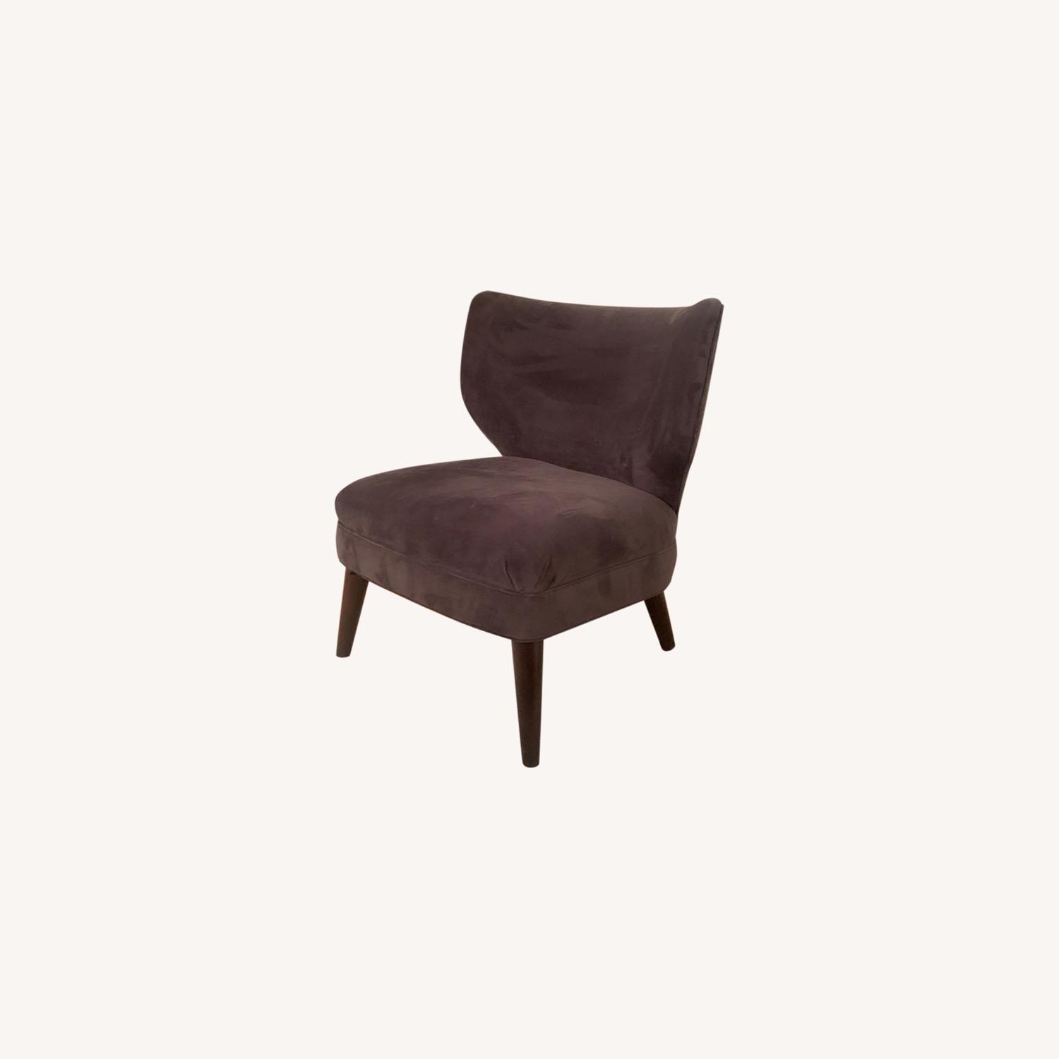 Seller's Notes:West Elm Navy Retro Wing Chair; fabric is performance velvet Ink Blue and legs are solid wood, Chocolate Brown. I bought this chair to go in my living room a few years ago. It didn’t get much (or any) use, so I’m not bringing it with me for my upcoming move. It’s super soft and in great condition because it’s barely been used! The legs have very very minor scratches.