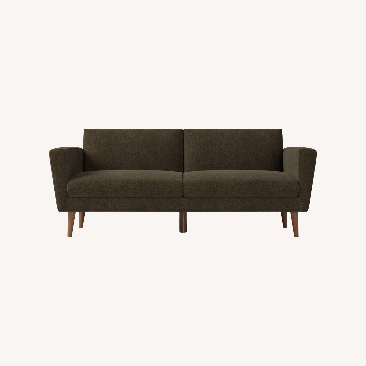 Seller's Notes:Light Walnut Covered in your choice of Twill (73% polyester, 27% acrylic) in Dove, Yarn-Dyed Linen Weave (78% polyester, 22% linen) in Pewter or Modern Chenille (65% virgin polyester, 35% recycled polyester) in Olive. Solid pine and engineered wood frame. Solid rubber wood legs in a Light Walnut finish (legs are removable). High-gauge sinuous springs provide cushion support. Seat and back cushions have fiber-wrapped, high-resiliency polyurethane foam cores. Seat firmness: On a scale from 1 to 5 (5 being firmest), it's a 5. Semi-attached, nonreversible cushions. Made in China.