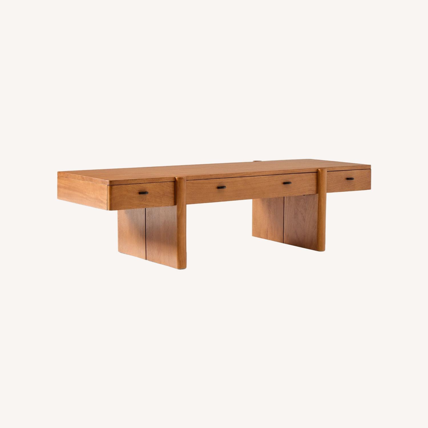 Seller's Notes:Kiln-dried solid mango wood frame and legs covered in an Acorn finish. The mango wood used on this product is sustainably sourced from trees that no longer produce fruit. Natural variations in wood color and grain make each piece one of a kind. Solid and engineered wood drawers. 3 drawers open on smooth metal glides. Made in India.