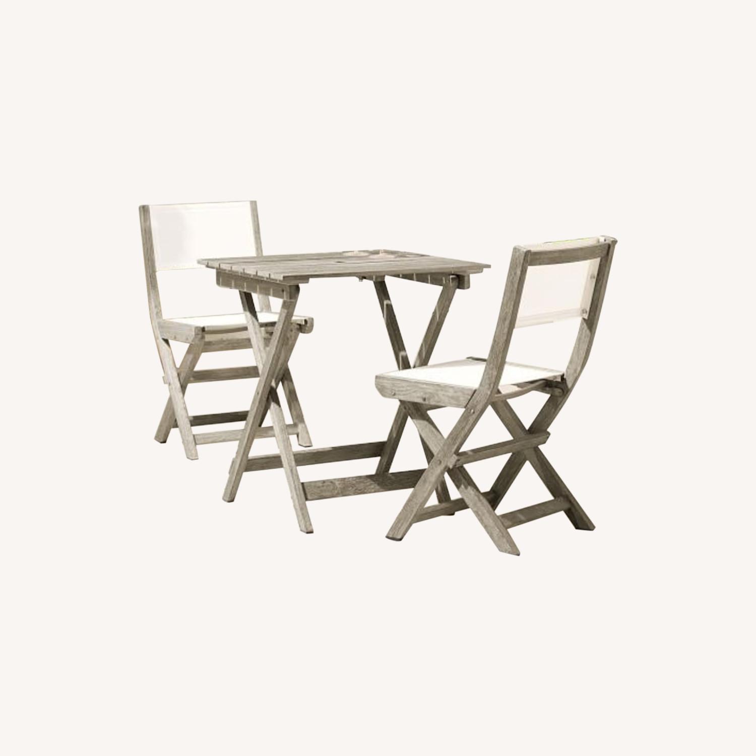 Seller's Notes:This is a West Elm Outdoor Folding Bistro Set that currently costs $618 on West Elm's website. It's in great shape and has the regular wear and tear from the weather.