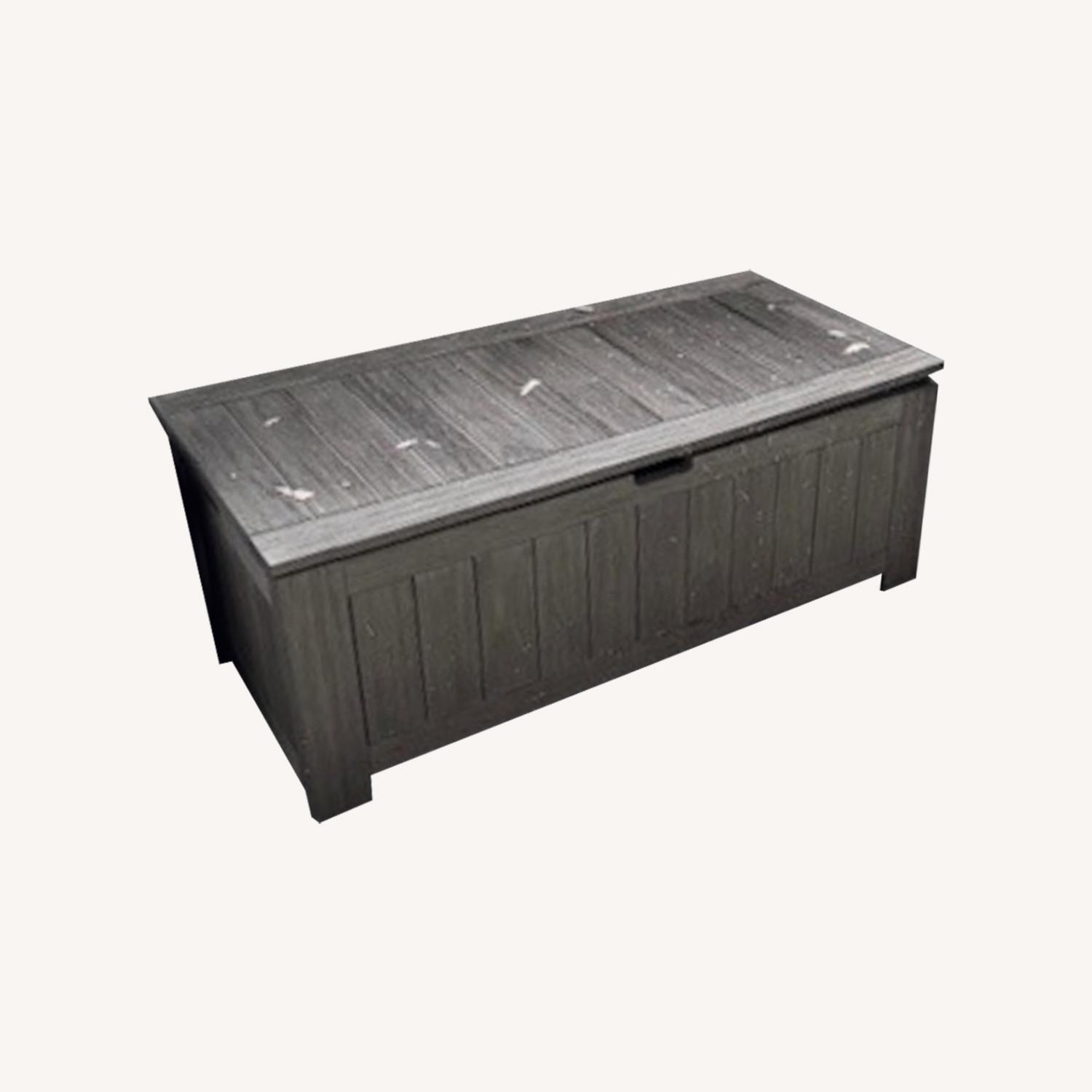 Seller's Notes:2 wood storage trunks from west elm have been outside for 2 years so a little wear but beautiful and keep the snow out