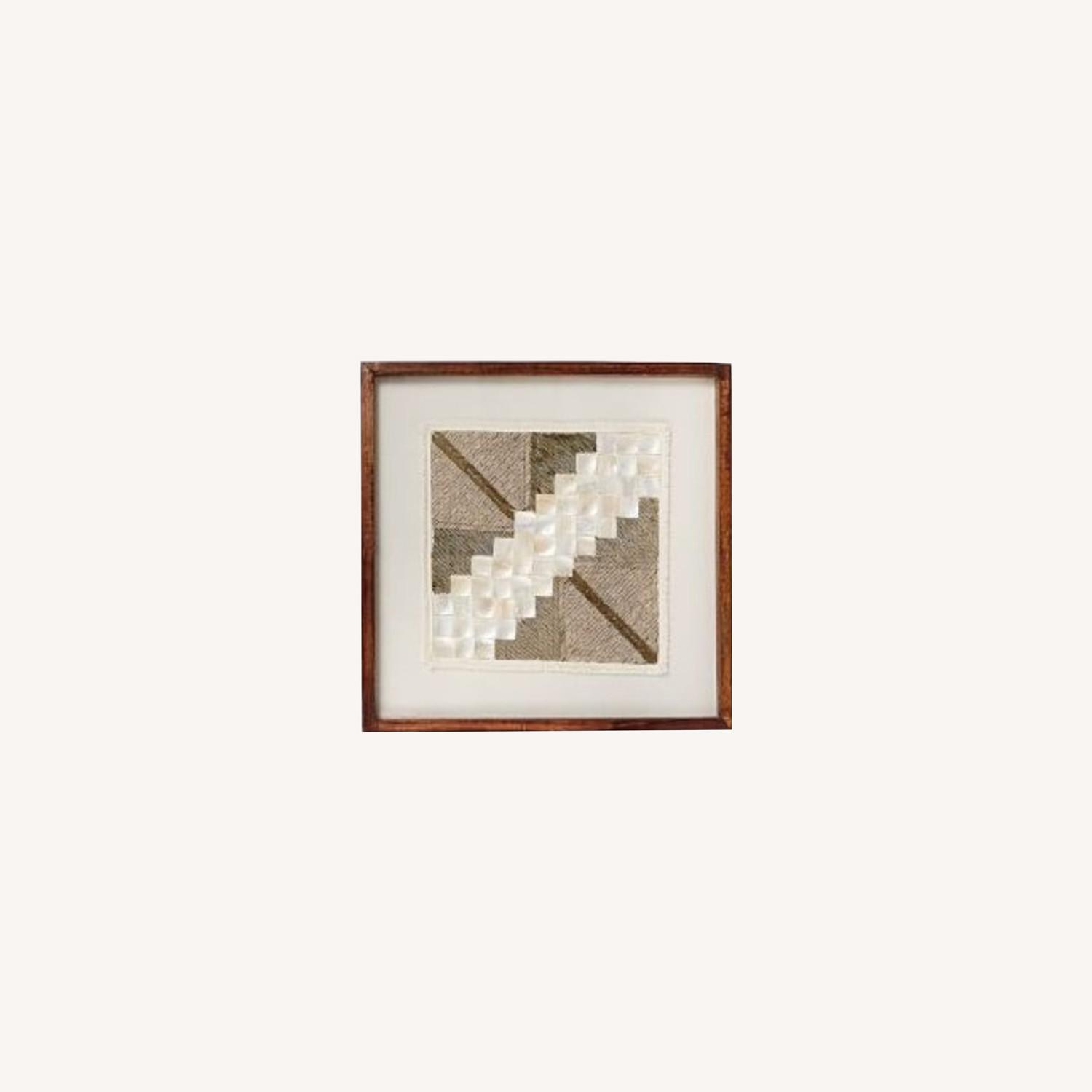 Seller's Notes:Selling a pair (two) of Framed Beaded Wall Art, Diagonal, Gold by West Elm (now discontinued) in near mint condition. They're almost identical to each other but not exactly the same. See photos. They feature shiny beads in taupe and gold metallic tones, a beige mat and wood frame. Both are 18 inches square. Each retailed for $120 not including tax or shipping at West Elm.