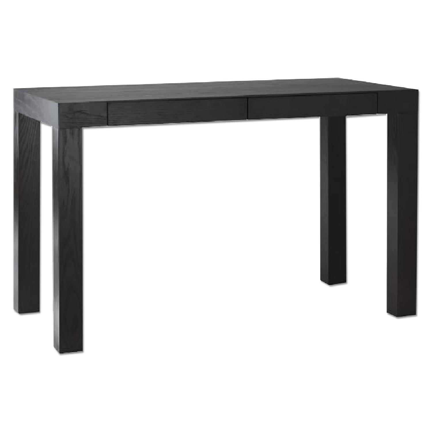 Seller's Notes:This desk has square legs the same thickness as its top, an exacting equation of modern design. With two hidden drawers, the Parsons Desk works just as well as an entryway table, dining room buffet or media console as it does in your home office. *some wear and tear on top. see photo Desk is selling at West Elm for $399 - http://www.westelm.com/products/parsons-desk-with-drawers-f099/ 48"w x 24"d x 30"h. Two drawers close flush. Engineered wood.
