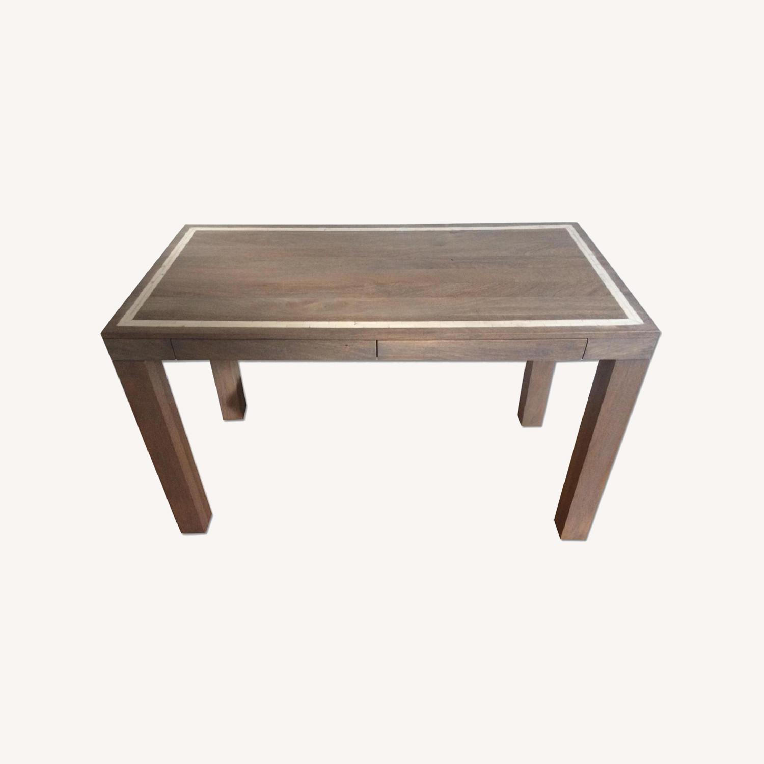 Seller's Notes:Love this desk. West Elm Parsons Desk - Mango wood with Bone Inlay. A couple of small nicks that are not noticeable. And one tiny pink highlighter stain that's also not noticeable unless you are looking for it. Drawers work fine. Legs are good. Easy assembly. Sad to let it go.