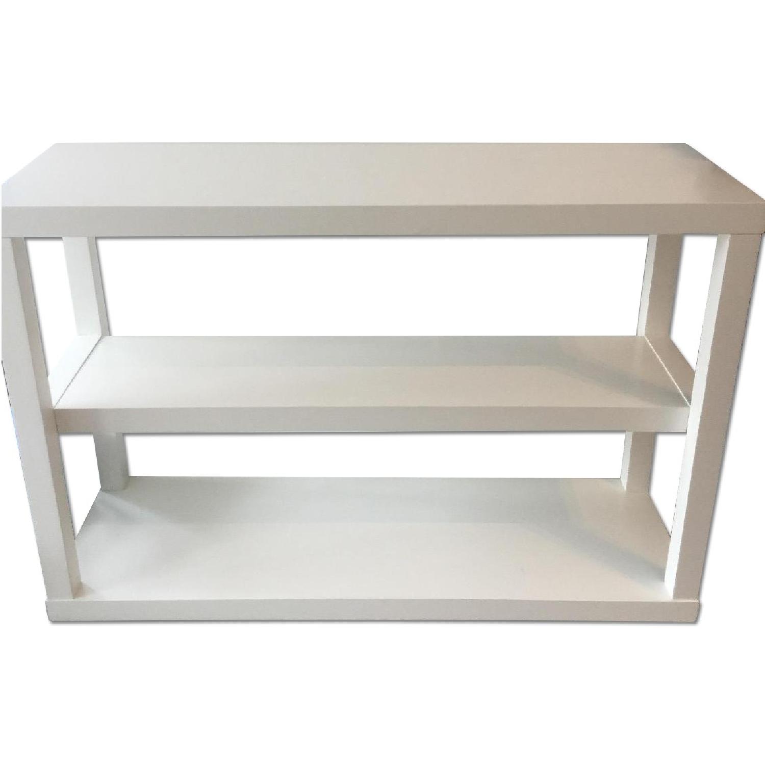Seller's Notes:Nice, modern, minimal bookcase from West Elm. We've used this bookcase in the traditional sense (for books) and as a TV stand. We recently moved apartments and this no longer works in our space. There are some marks from use. See attached photos for detail.