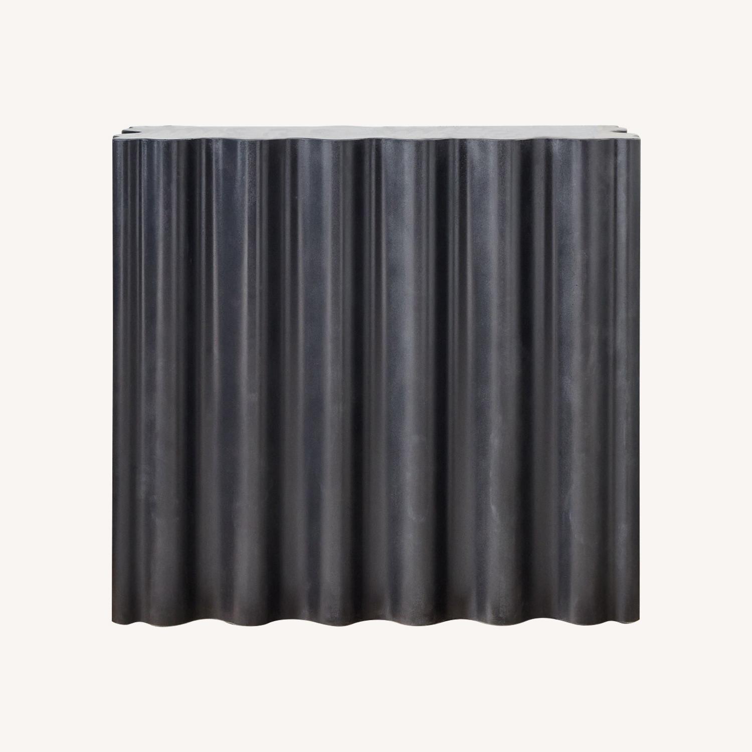 Seller's Notes:Created by Patrick Cain Designs. Learn more. 35.25"w x 13"d x 32"h. Average of 100–120 lbs. Concrete and 99.9% recycled Styrofoam mixture. Heavily sealed surface to repel acids and liquids over long-term use. Plastic feet to protect floors and slide easily. Indoor or outdoor use. Due to its handmade quality, variations in fades and naturally occurring embellishments make each piece beautifully unique. This contract-grade item is manufactured to meet the demands of commercial use in addition to residential. See more. Designed and hand assembled in Los Angeles, CA.