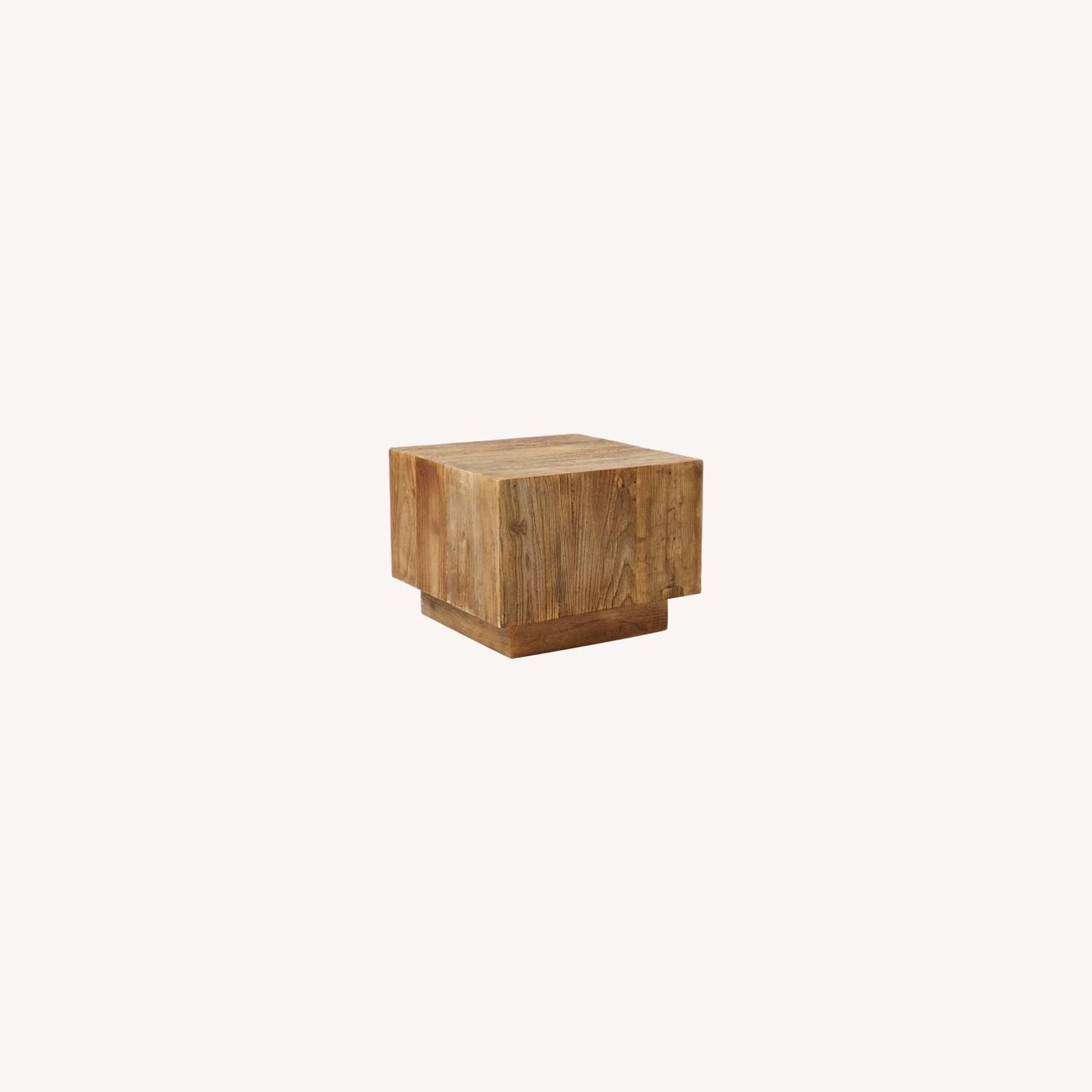 Seller's Notes:Made from reclaimed elm wood, the Plank Side Table has a solid silhouette that's deceptively light—a hollow interior makes it easy to move around. Hand finished and hand assembled, each table is subtly one-of-a-kind. 22"sq. x 18"h. Solid reclaimed elm wood. Natural variations in the wood grain and coloring are to be expected. Hand assembled and hand finished. Imported.