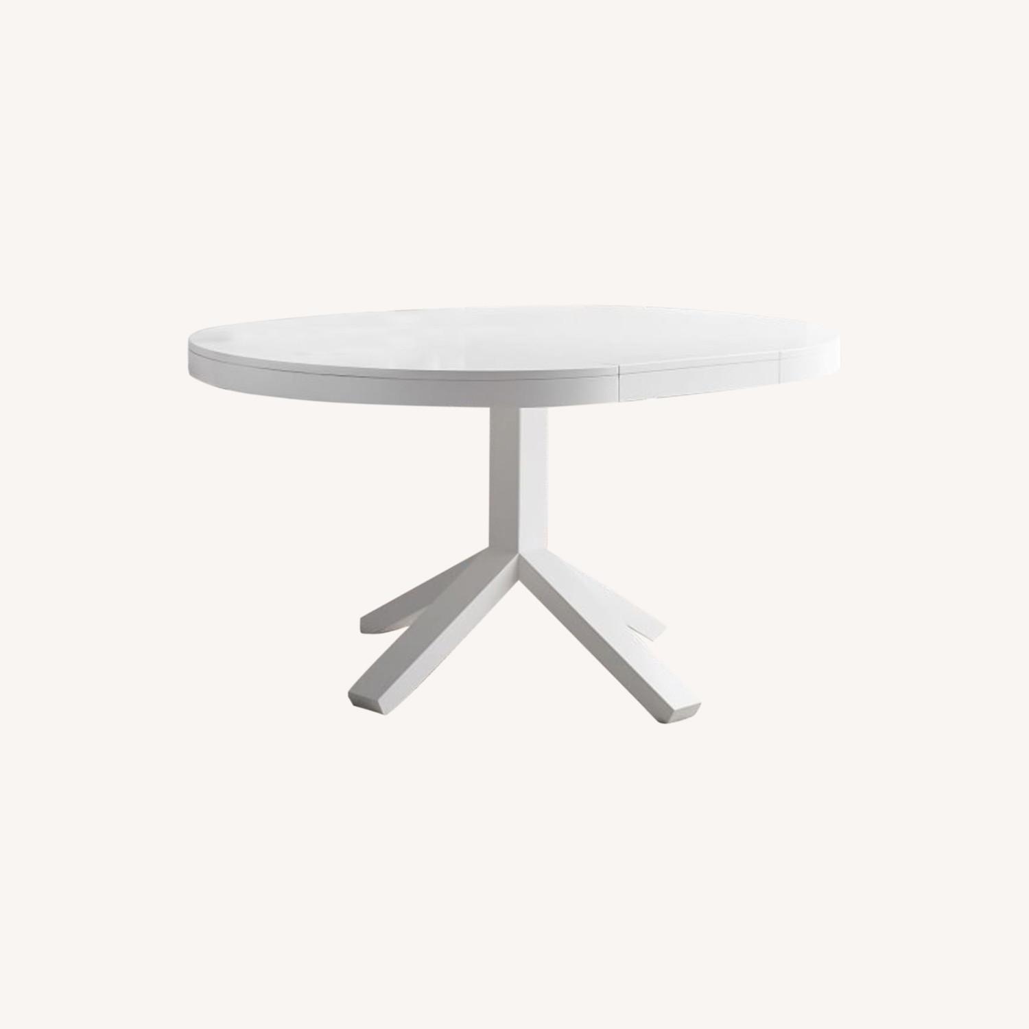 Seller's Notes:AMAZING like new West Elm Poppy Expandable Table for sale! BARELY used once a week by a tech start-up as an office table. We're moving offices // changing our furniture aesthetic, and can't bring this gem with us. Description from West Elm: Add a burst of playful style to the dining room with our Poppy Expandable Table, which stands on a solid wood pedestal base that frees up leg room. Even better, the table can be extended to seat up to six whenever company calls. KEY DETAILS - 42"–60"w x 42"d x 29.5"h. - Solid wood base + engineered wood top. - Covered in a water-based White finish. - Table expands via one drop-in leaf (included). - Base features adjustable levelers to adapt to varying floor levels. - Made in Vietnam. DETAILED SPECIFICATIONS - Overall product dimensions: 42"diam. x 29.5"h. - Overall product dimensions (fully extended): 60"w x 42"d x 29.5"h. - Comfortably seats up to: 4-6. - Drop-in leaf: 18"w. - Clearance under table: 26.5". - Base dimensions: 36.8"diam. x 26.5"h. - Overhang: 11.5".