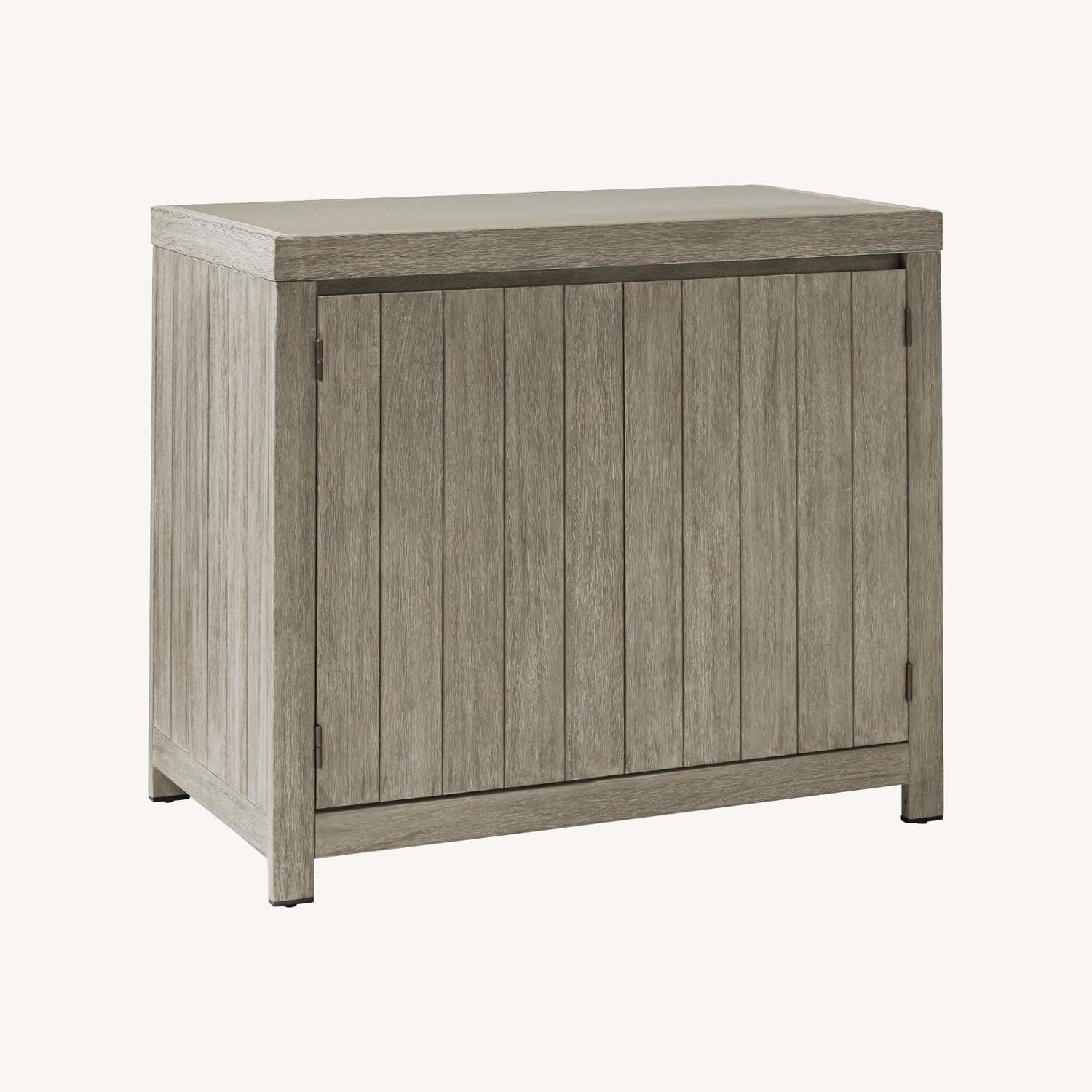 Seller's Notes:If you can't stand the heat, bring your kitchen outside. Our Portside Kitchen Storage Collection's rustic finish and moisture-resistant solid wood frame withstand the elements while providing the function you need to cook and entertain. Each piece can stand alone or be mixed and matched together to build the outdoor kitchen of your dreams. KEY DETAILS See Details & Dimensions tab for individual measurements. Glass fiber reinforced concrete top inlay. Glass fiber reinforced concrete is engineered to be lighter than concrete but with the same durability. Moisture-resistant solid mahogany and solid eucalyptus wood with wire-brushed surface. Made with FSC®-certified wood from responsibly managed forests. Open Corner Cabinet doubles as a refrigerator cabinet. All pieces can be paired together for a customizable storage system. Made in Indonesia.