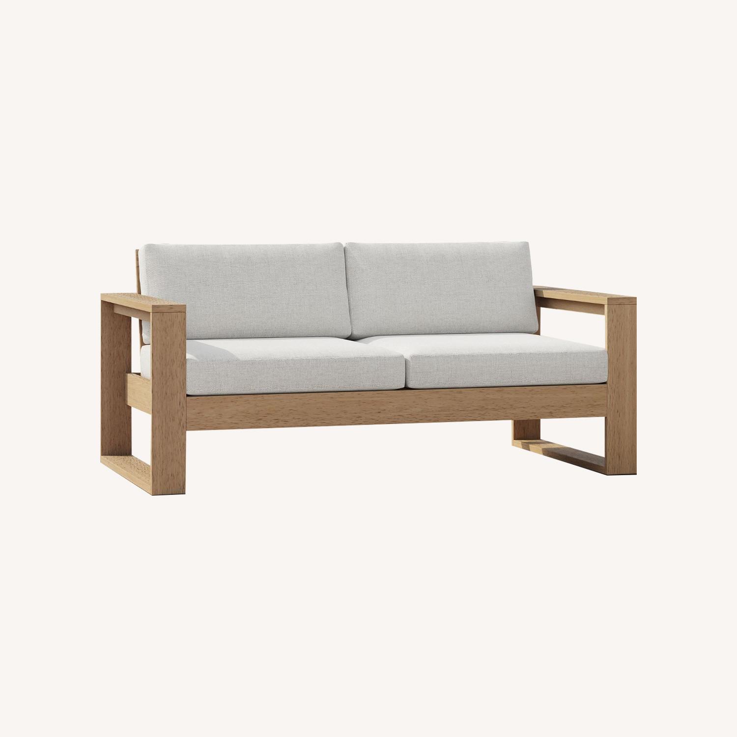 Seller's Notes:Made with FSC®-certified wood from responsibly managed forests. Moisture-resistant solid mahogany and solid eucalyptus wood with wire-brushed surface. Yarn-dyed weather-resistant cushions (included). Includes base cushions and back cushions. Back of frame has built-in ledge to hold drinks, etc. Outdoor cover available (sold separately). Includes base cushions and back cushions. Made in Indonesia.