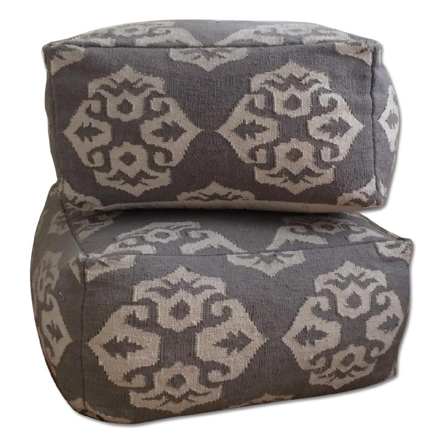 Seller's Notes:The grey/ivory print is really neutral and goes with everything. You canarrange a few around a coffee table for casual seating, or rest a tray on top for a temporary side table like I've done. The fabric is 100% cotton and can be spot cleaned. The inset is Recycled polystyrene beads and removable. The poufs have a zipper closure. I love these but got some new furniture.
