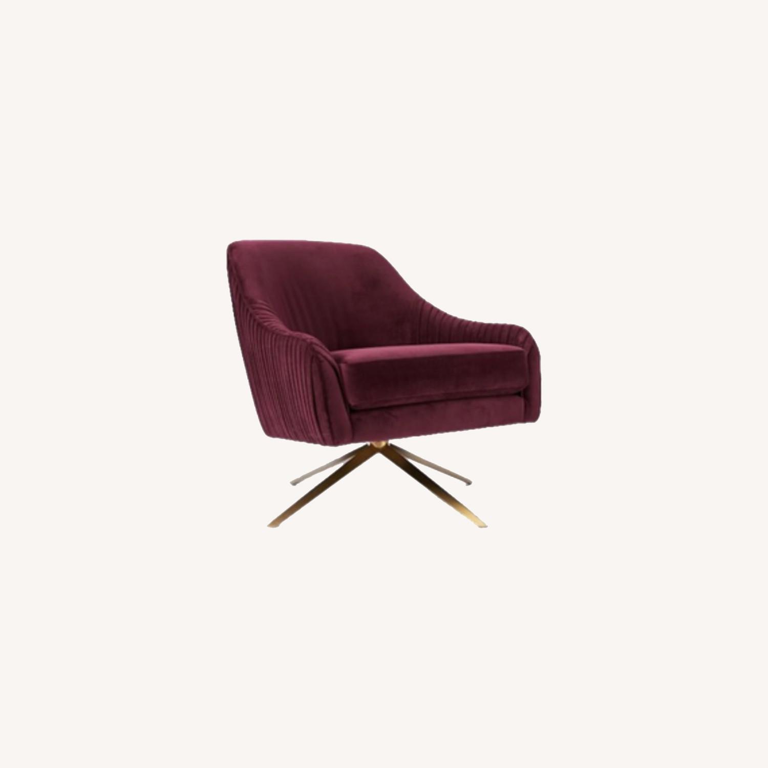 Seller's Notes:This West Elm Swivel Chair in dark Purple which is no longer being made in this color and is beautiful. I had it for a year and half never used it. Sad to let it go but I am moving and can’t take everything with me. It had Pleated velvet fabric running through back and plush seat cushion is flippable. The swivel base is gold metal legs that easy spins around. Dimensions already stated in info and photos.