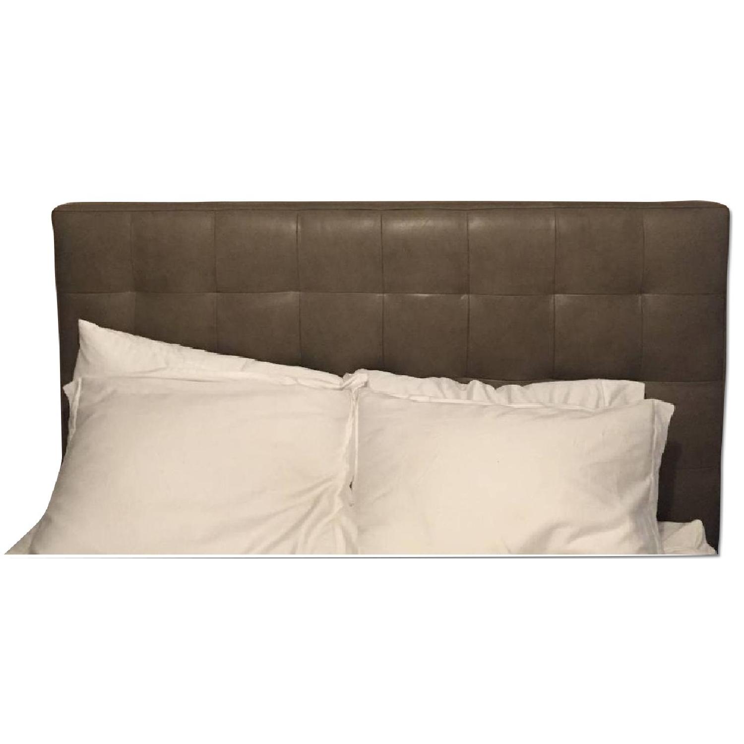 Seller's Notes:West Elm - Tall Leather Grid-Tufted Headboard w/ Simple Bed Frame (Chocolate) Headboard Color: Elephant Queen Headboard: 62"w x 5"d x 56"h. Headboard Retail: $749 Also for sale the Simple Bed Frame Retails:$349