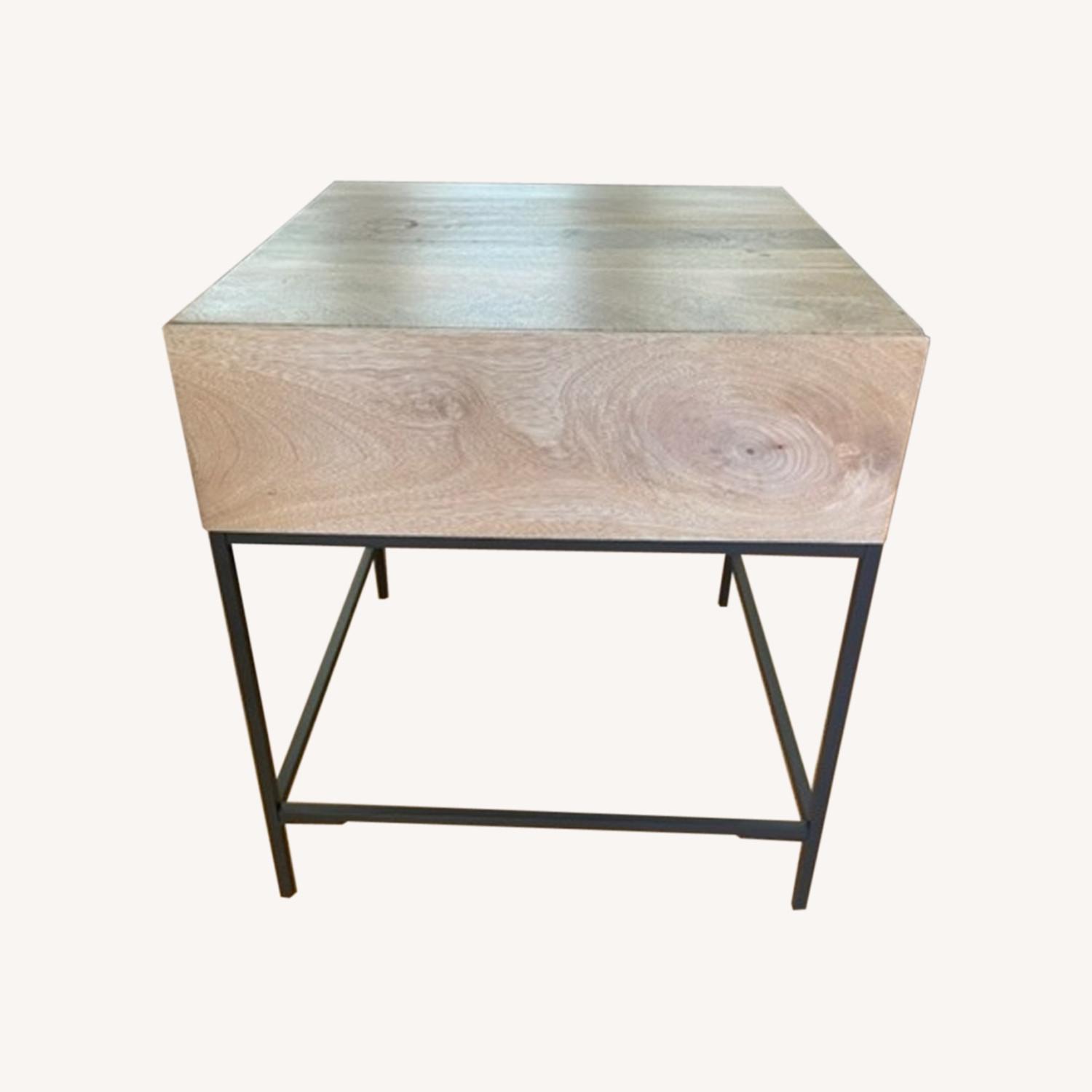 Seller's Notes:Almost new West Elm Raw Mango Industrial Storage Side Table. Beautiful wood grain, excellent condition, doesn't fit in our new house.