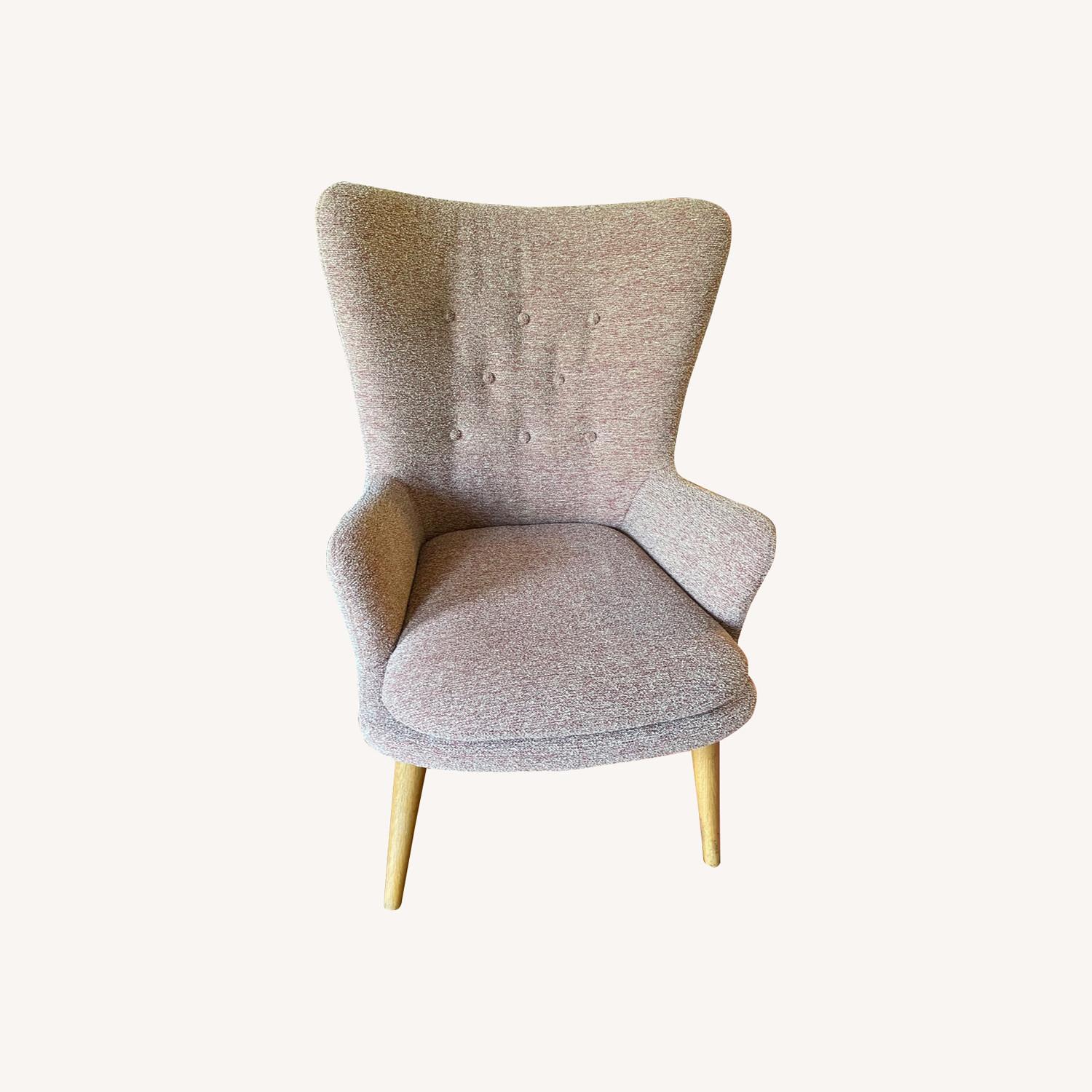 Seller's Notes:Dubbed the "Alice in Wonderland" chair by one of my friends, this piece was a lucky West Elm floor model find. Comfortable and supportive, it's been my writing/meditating chair for the past 5+ years. I'm about 5'6 and can sit in it easily with my legs crossed. The only reason I'm letting it go is that it no longer fits my aesthetic or my space, and I would love to find it a good home! Some marks on the legs—I'm assuming from its time in-store—but recently steam cleaned and well cared for.