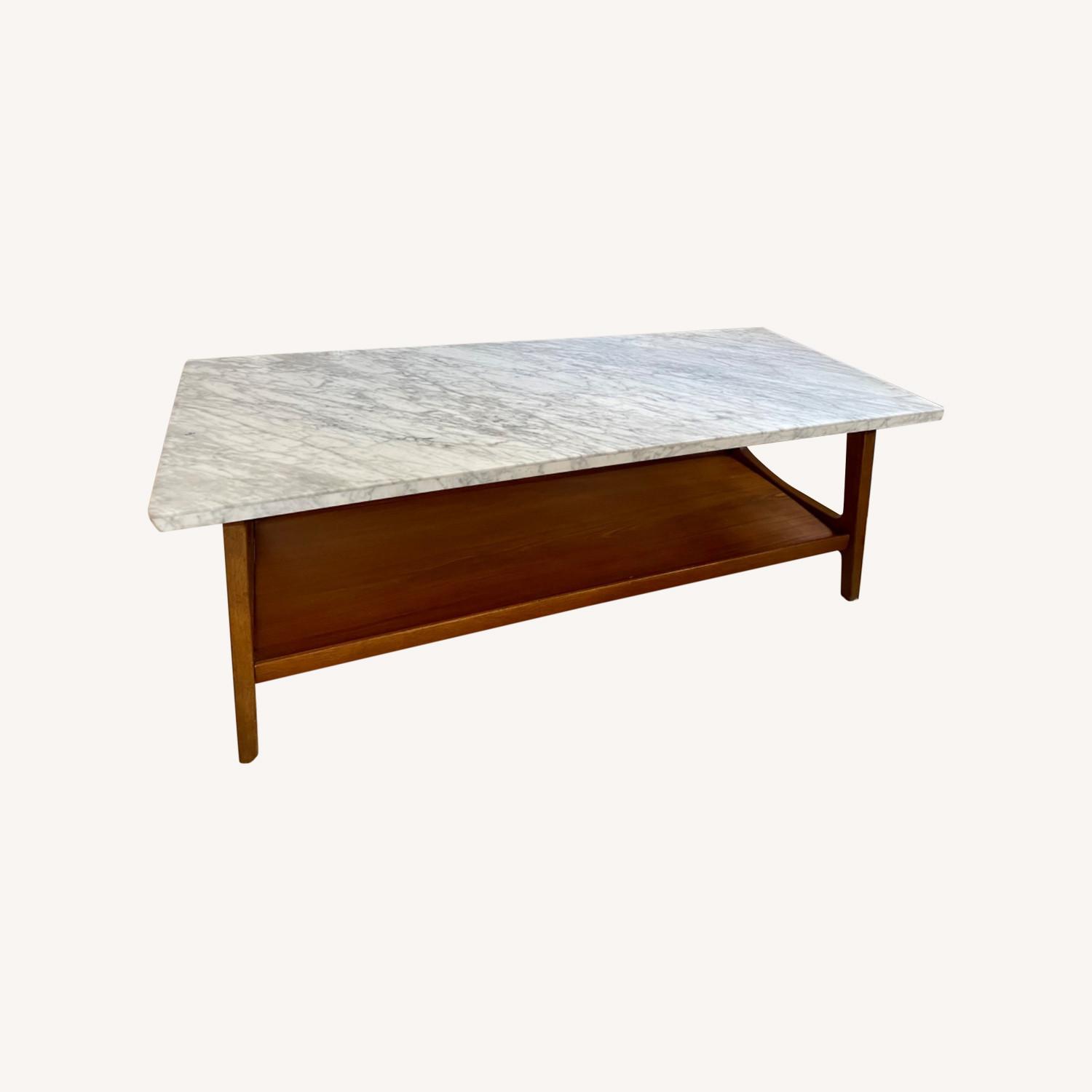 Seller's Notes:Beautiful West Elm classic mid century Reeve table. Strong and sturdy with unique coloration of marble top coffee table.