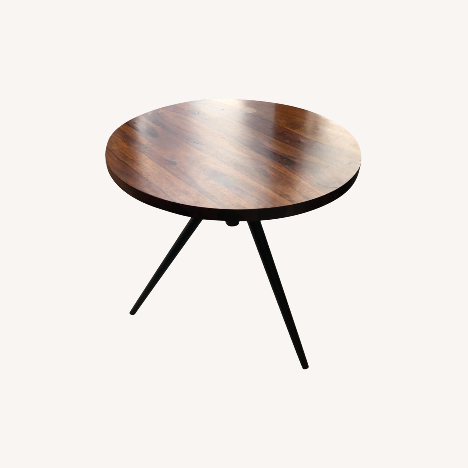 Seller's Notes:Bistro-style dining table, with adjustable height (28” - 36”). Meant to seat two, but we used as an extra large side table and as a high-top when entertaining. In good condition, with minor scratches and blemishes.
