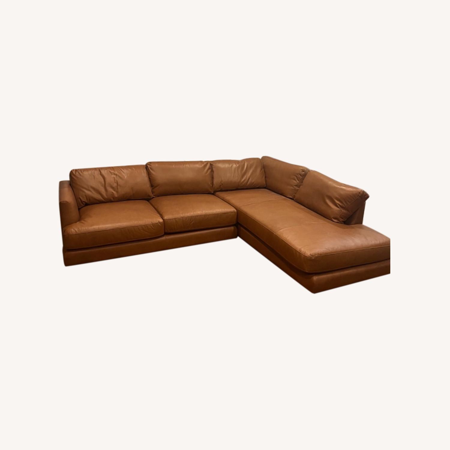 Seller's Notes:This Saddle Leather Nut 2pc right chaise sectional is from the West Elm Haven Collection