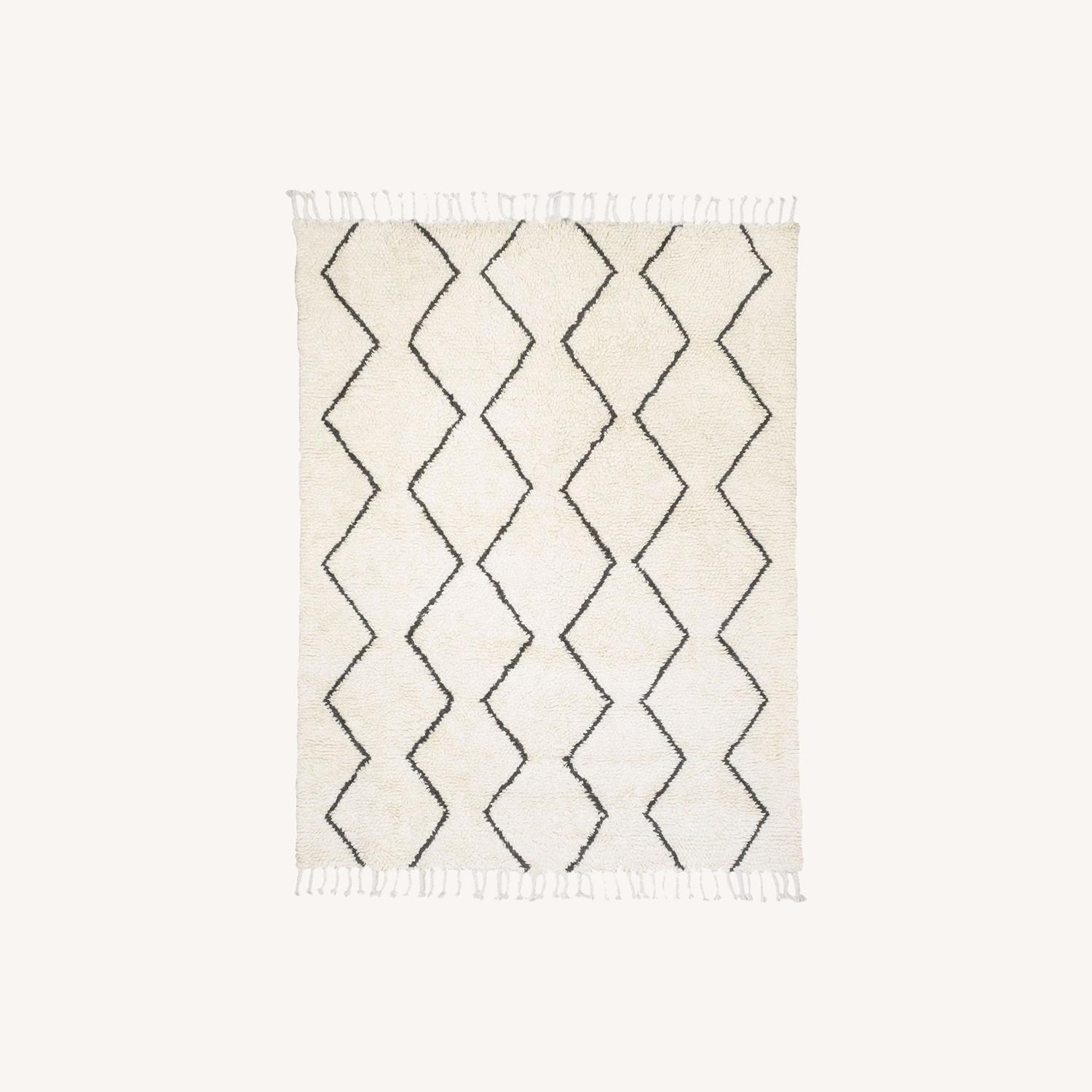 Seller's Notes:9x12 Wood West Elm Souk Shag rug in white wool with black detail. This is a great and comfy rug but I'm changing some of the decor in my apartment and this rug won't work anymore. 2 1/2 years old and in great condition. Has not been exposed to smoke or pets.
