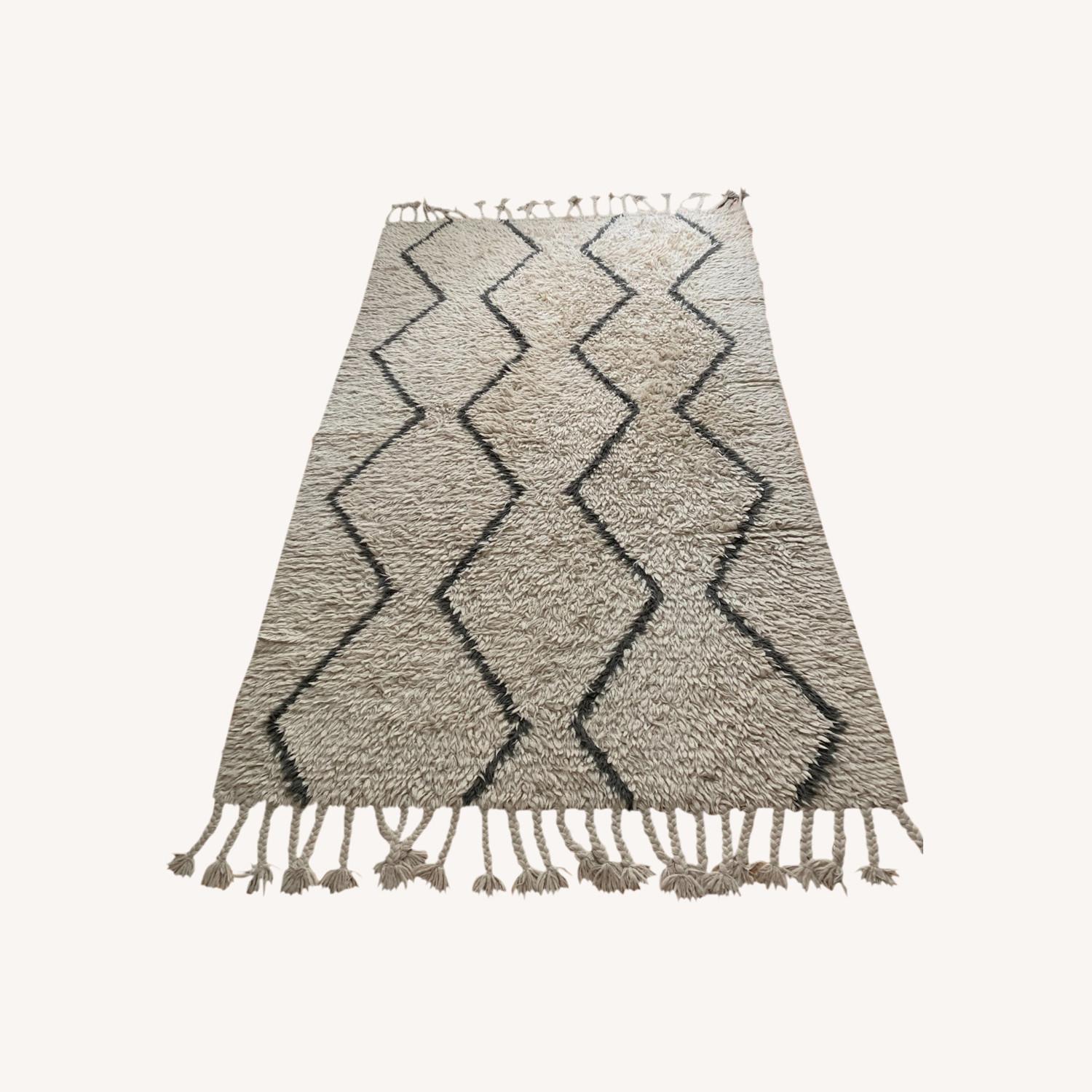 Seller's Notes:PROFESSIONALLY CLEANED ONCE A YEAR Its minimal, Moroccan-inspired pattern. Each is handwoven using 100% wool. Hand braided tassels add visual appeal.