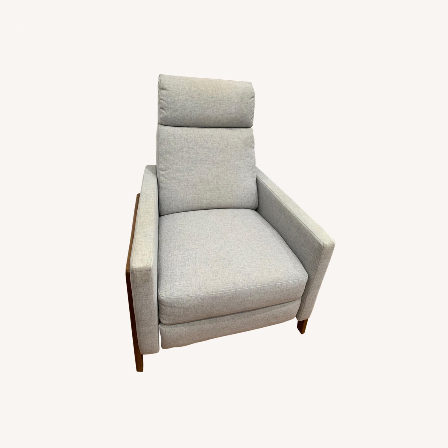 Seller's Notes:Spencer Wood-Framed Upholstered Recliner from West Elm. It is used so the fabric (frost gray) has faded over the years - particularly around the head and arms. There are some scratches on the side that happened during a move (pictured). Comes from a non-smoking, pet-less house. Selling for approx half the price of a new one. I'm selling because I don't have enough space for it anymore in my new place. My apartment is on the ground floor, just fyi if you choose to come get it yourself!