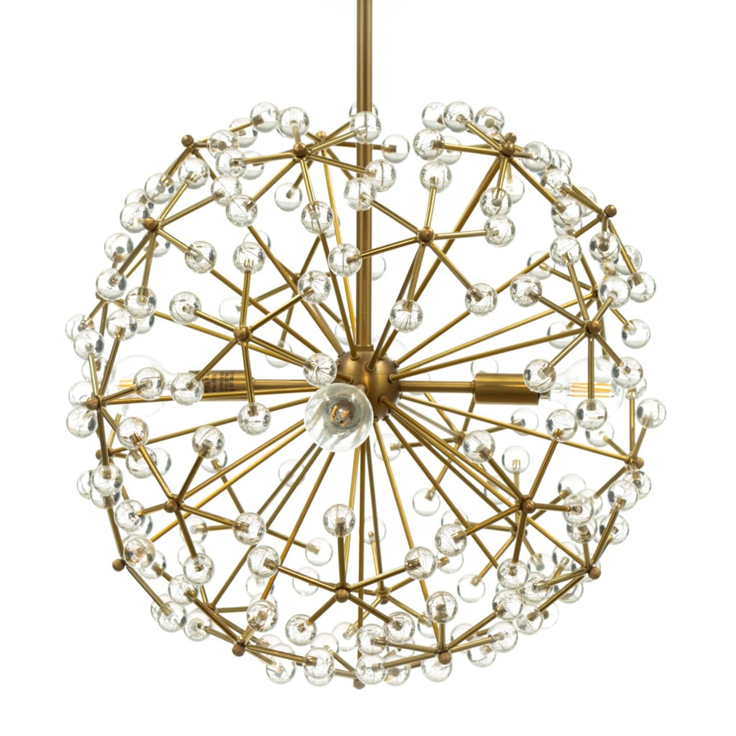 Shaped like a giant bloom, the acrylic beads on our Floral Burst Chandelier diffuse light beautifully.