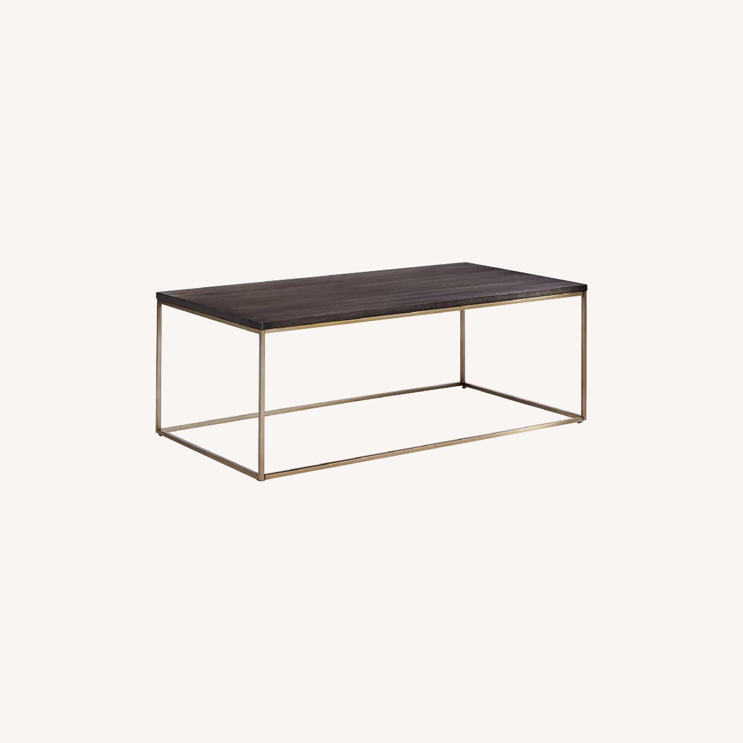 Seller's Notes:Please note the retail link is for the same coffee table with a "dark walnut" top, this has a washed gray wood top, with bronze metal frame. West Elm no longer sells the wood top in this color, so I am unable to provide the link to the exact piece. I am also selling the matching side table (pictured in the last image). Please see separate Apt Deco listing for details; Apt Deco also offers shipping discount when purchasing multiple items from the same seller. KEY DETAILS 44"w x 23.9"d x 16"h. Solid mango wood top The mango wood used on this product is sustainably sourced from trees that no longer produce fruit. Metal base. Top is made in China; base is made in India.