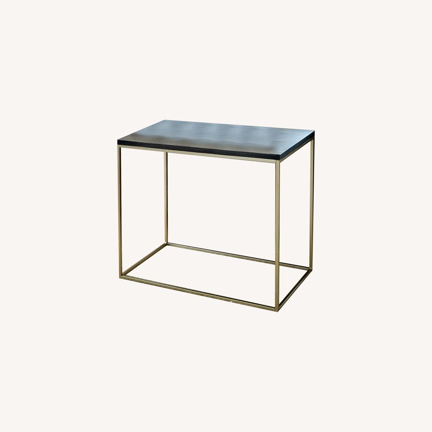 Seller's Notes:Designed with versatility in mind, our small-space friendly Streamline Side Table's slim frame and cool umber finish make it an easy fit in any style room. KEY DETAILS 28"w x 14"d x 22.7"h. Solid mango wood top in an Umber finish. Metal base in an Antique Brass finish. Made in India. SKU : 2317616 & 7489013
