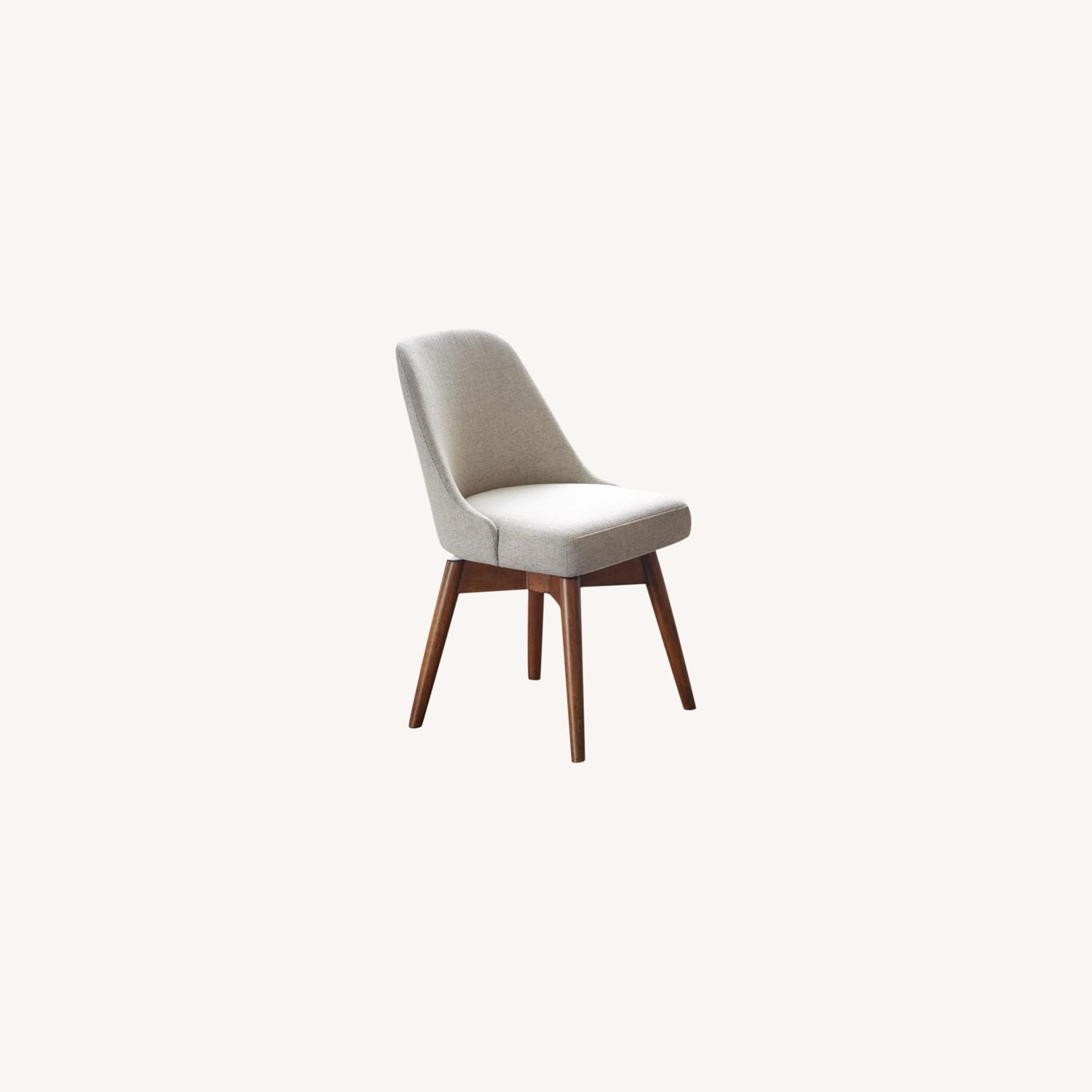 Seller's Notes:This took forever to arrive due to shipping delays, so I bought another chair in the meantime. It's still in the box unopened. Looked really beautiful and felt comfortable when I saw it in the store! The color is twill "Dove" and the legs are pecan wood. https://www.westelm.com/products/mid-century-swivel-office-chair-wood-legs-h6877/