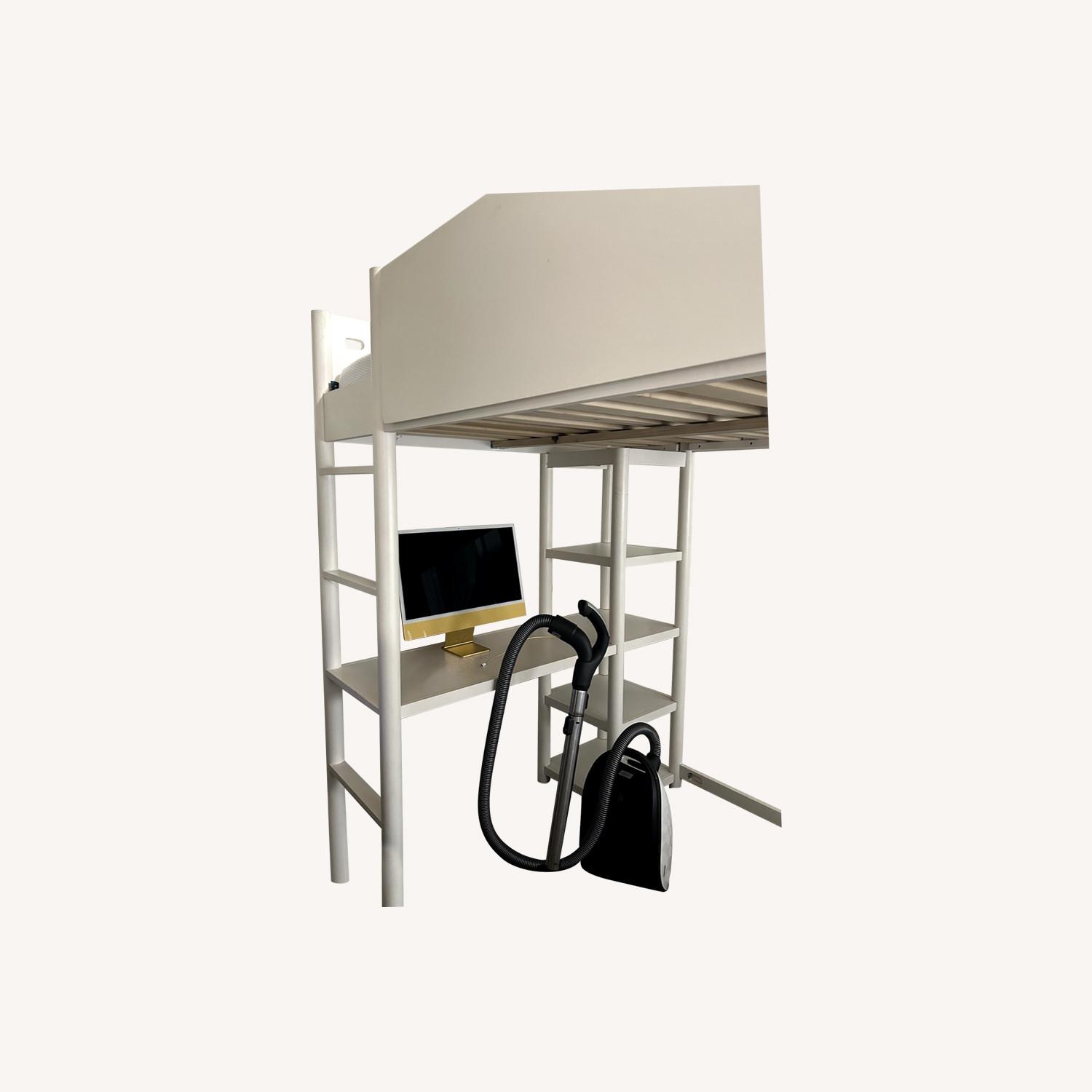 Seller's Notes:Purchased for my 7yr old. The bed is magical. The loft provides a cozy and private little world while opening up play space underneath. It is beautifully made in a perfect Sade of barely grey. Includes a full size LEESA child's mattress.